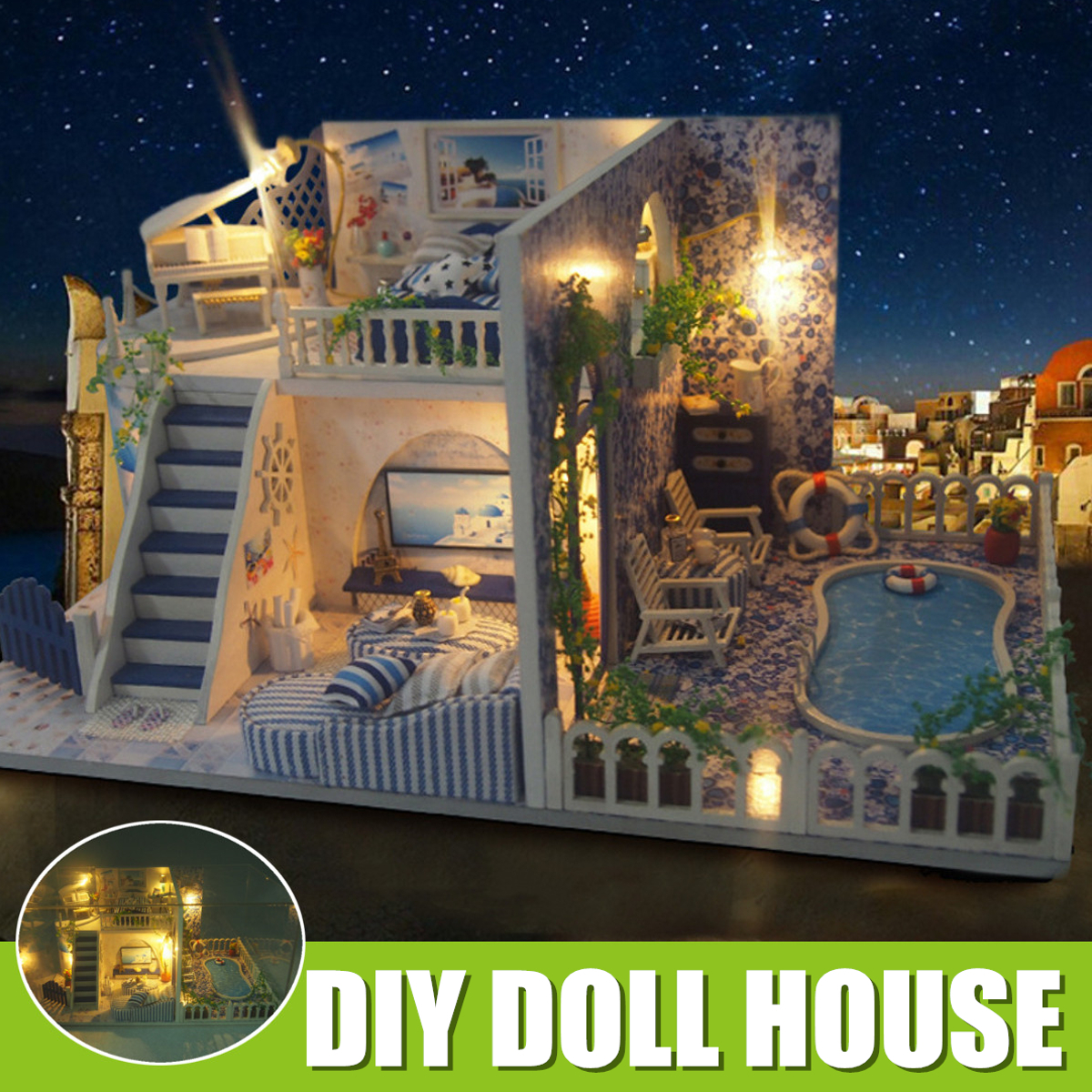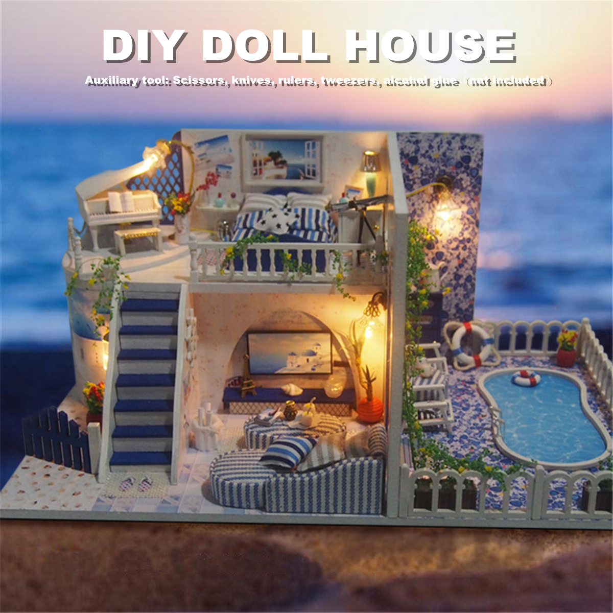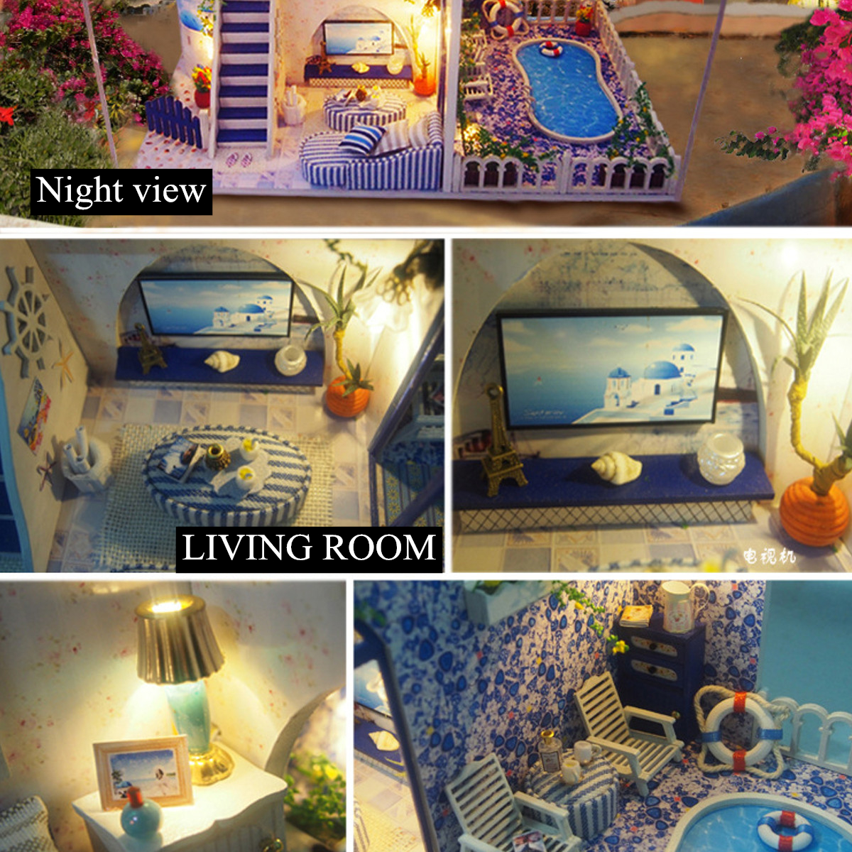 DIY Assembled Hut Santorini Creative Gift Doll House Model Toys