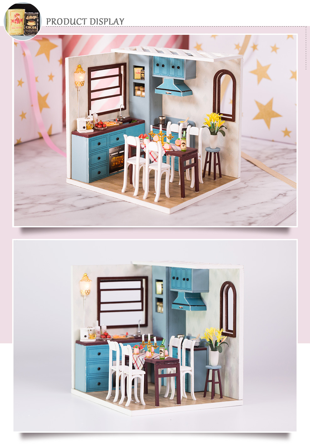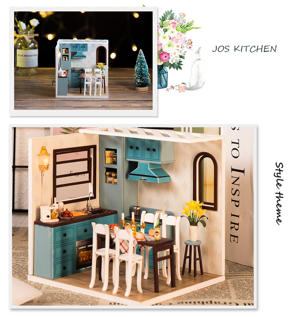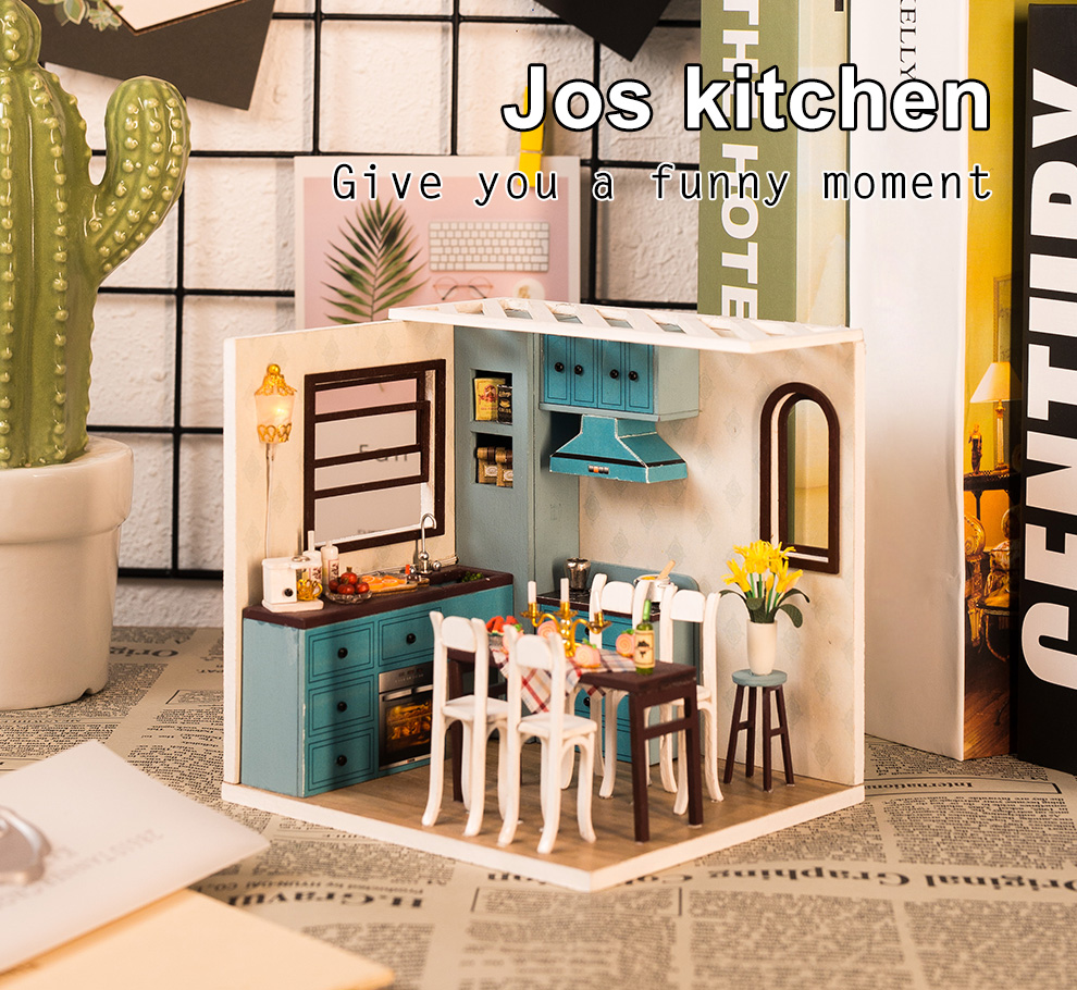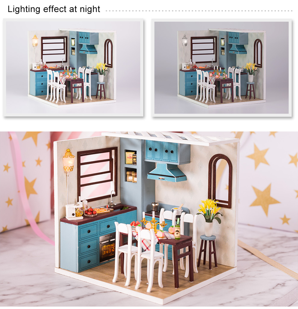 iiecreate M-011 DIY Jos Kitchen Miniature Doll House Furniture Model LED Light Toys Gift