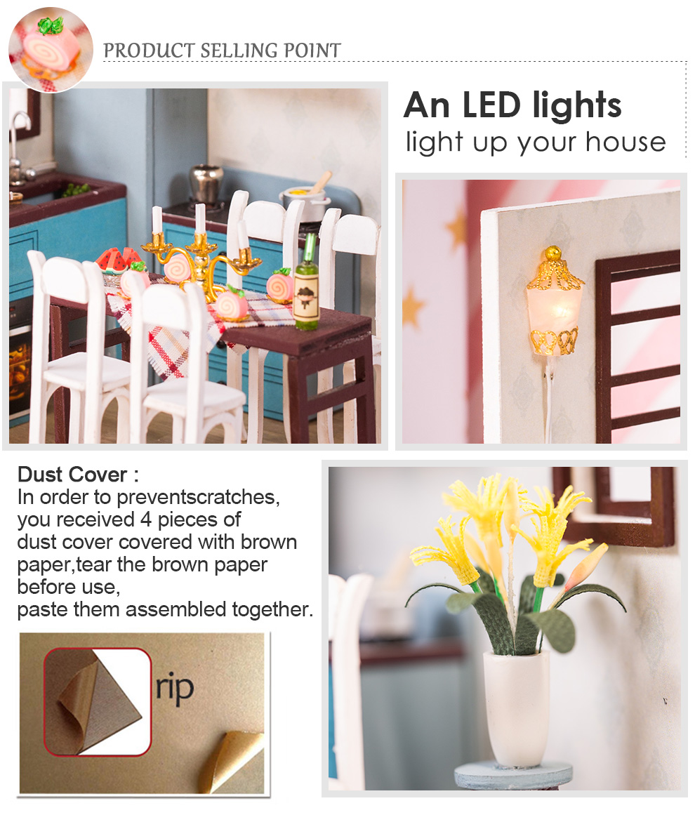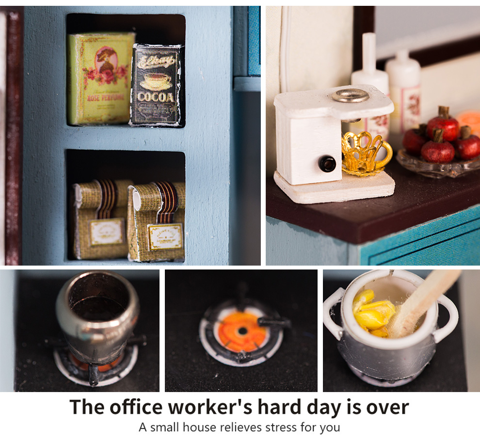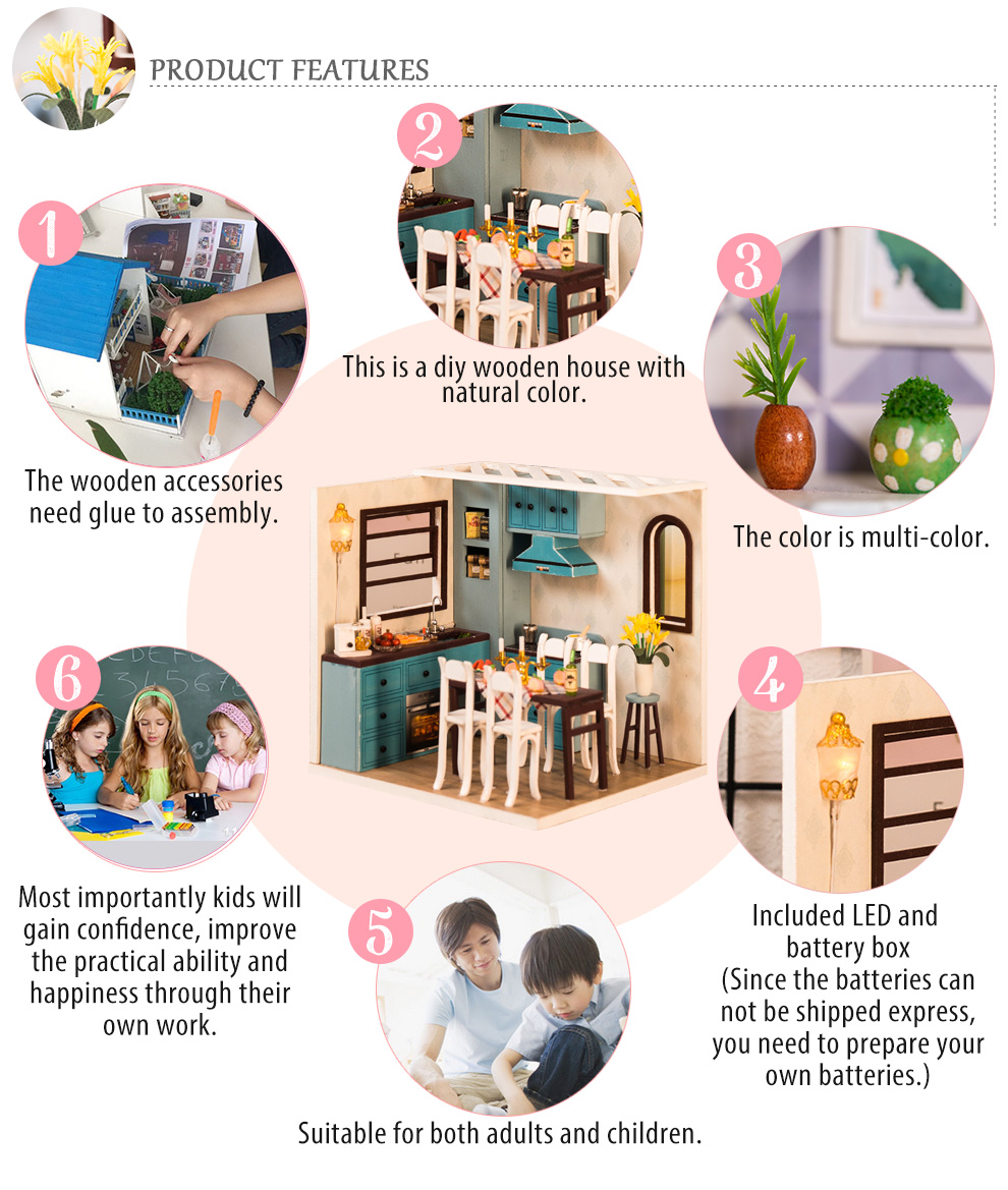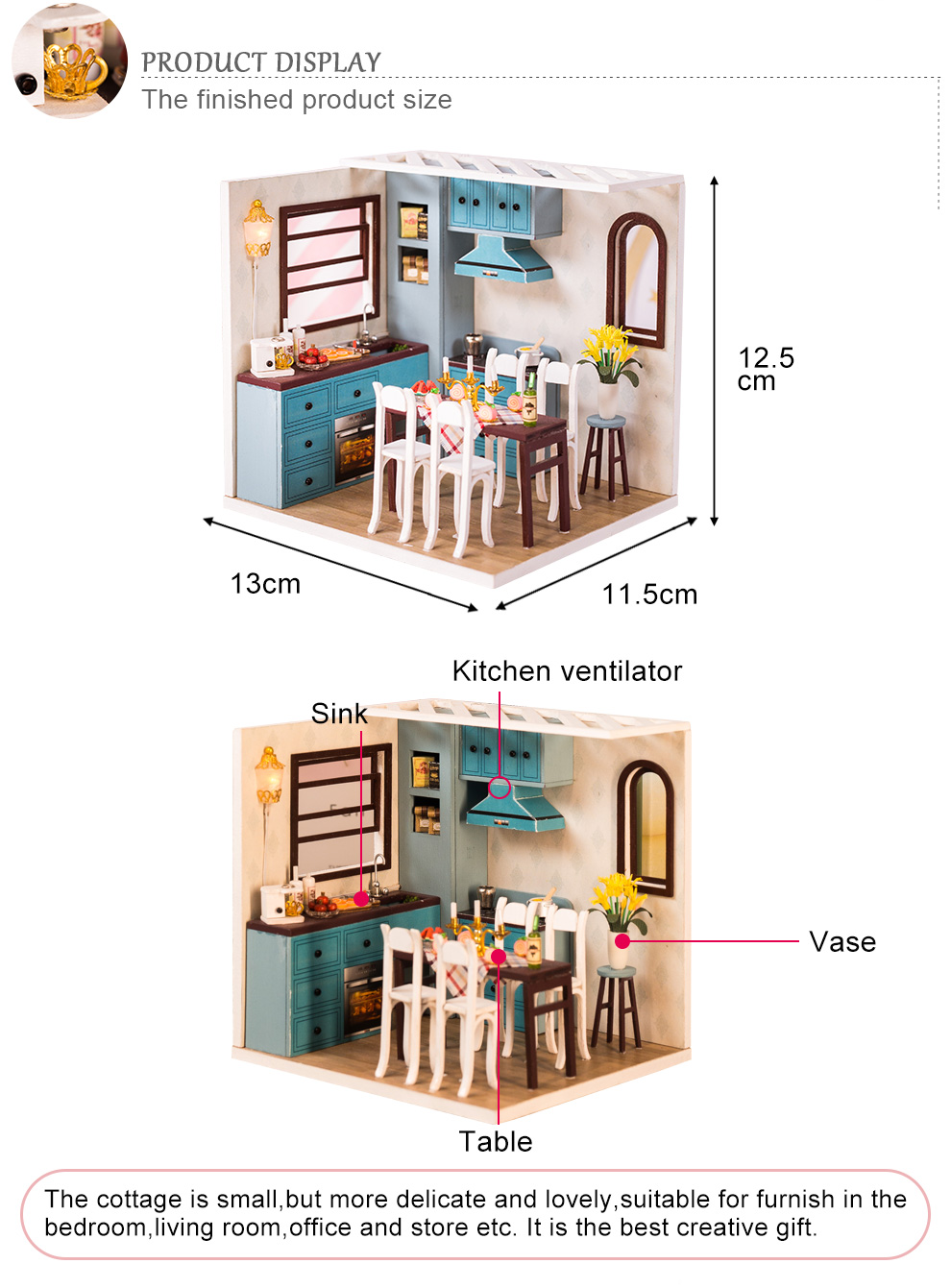 iiecreate M-011 DIY Jos Kitchen Miniature Doll House Furniture Model LED Light Toys Gift
