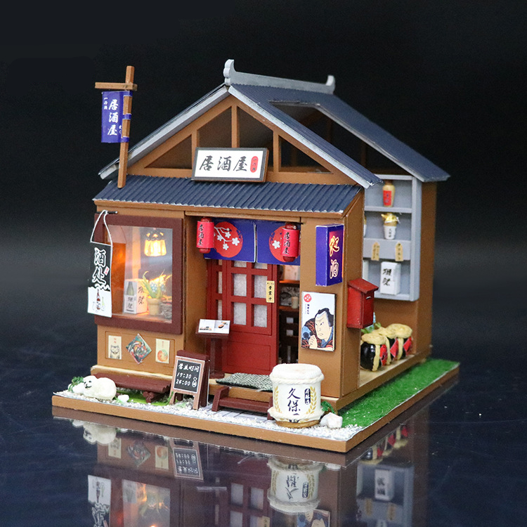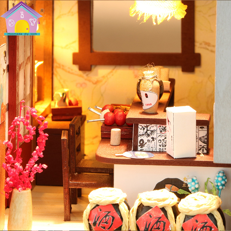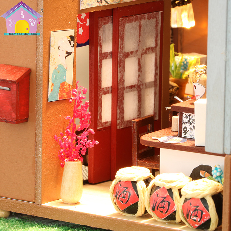 Description: Brand: Hoomeda Item: One Of The IZAKAYA Item NO.: M037 Finished Model Size: About 21*7.5*19cm Weight:About 0.7kg (With Cover) Assembly Difficulty Level: a**a**a**a**a** Assembly Time: 10-30 Hours (Depend on You) Main Material: Wood, Cloth, Plastic, Paper, Light, etc. Light: Included Music Motor: Included Dust-proof Cover: Included Glue: NOT Included