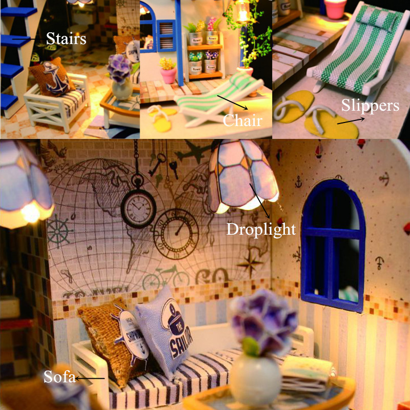 Package Included:1 x DIY Wooden Miniature Dollhouse Kit (Glue and Battery are not included)