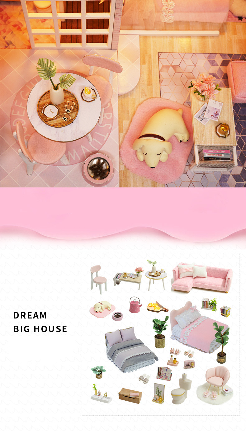 Package Included: 1 x DIY Dollhouse Kit (With Instructions & Small Accessories)