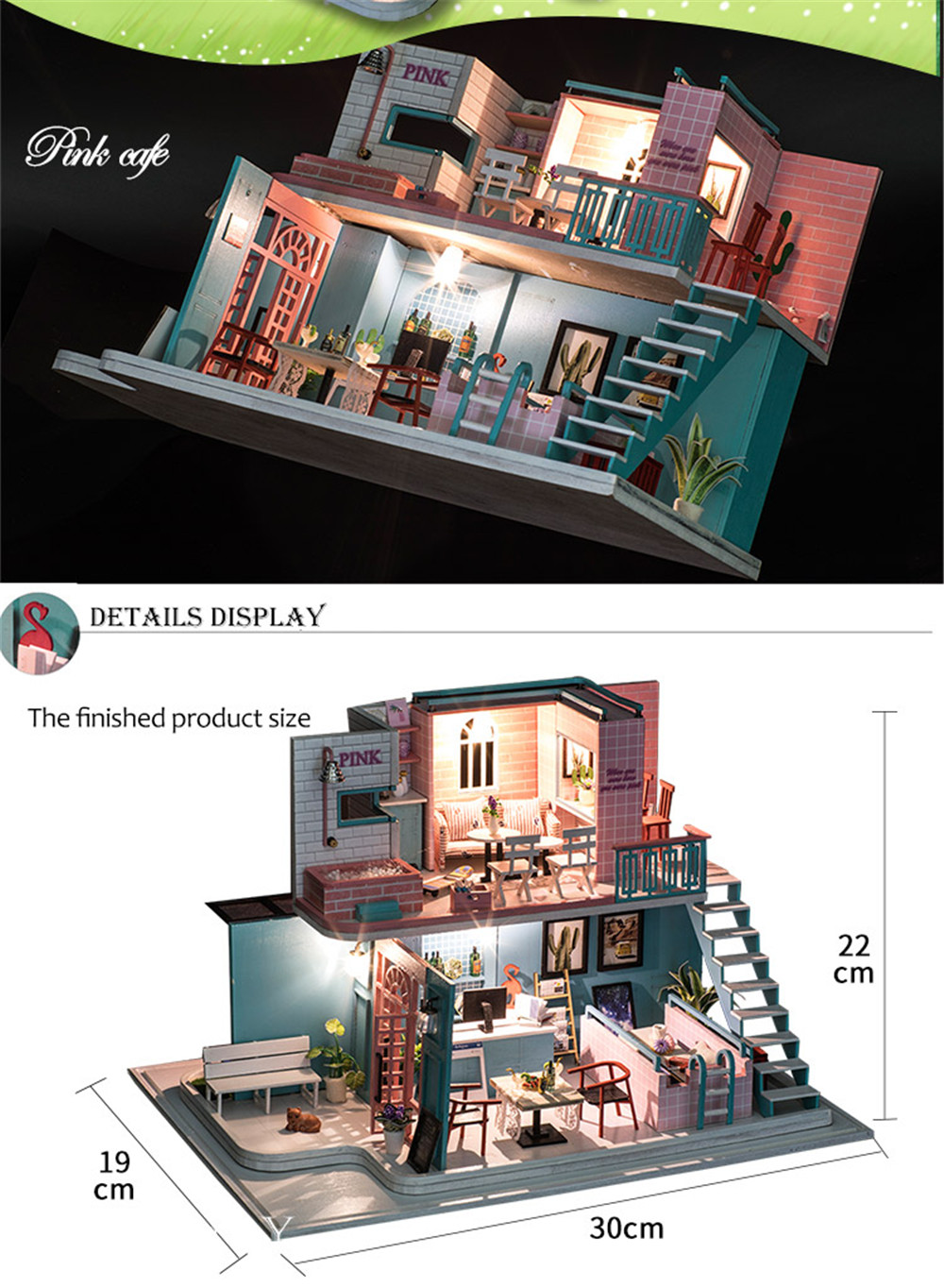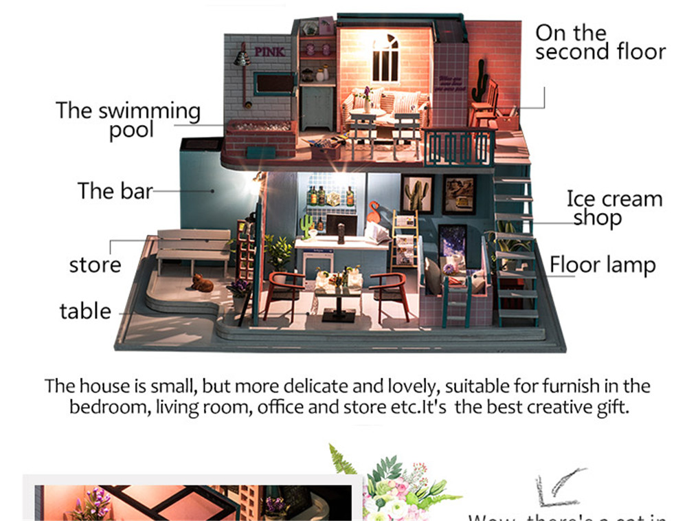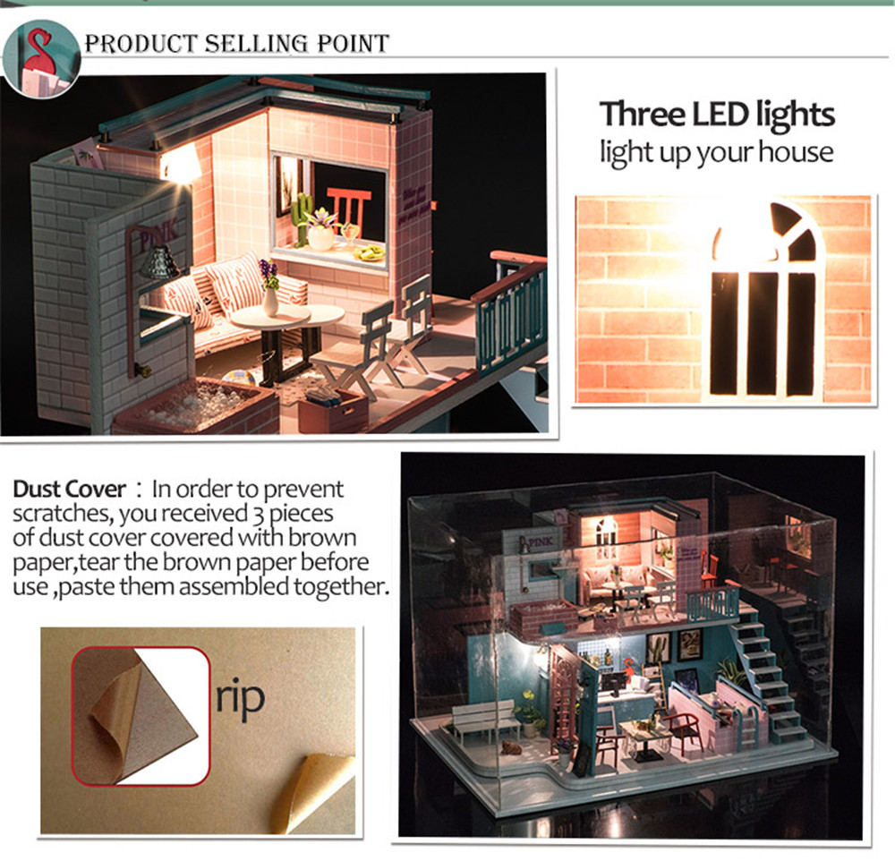 You're reviewing:iiecreate K-034 Pink Cafe House 30*19*22CM DIY Doll House With Furniture Light Cover Gift Toy