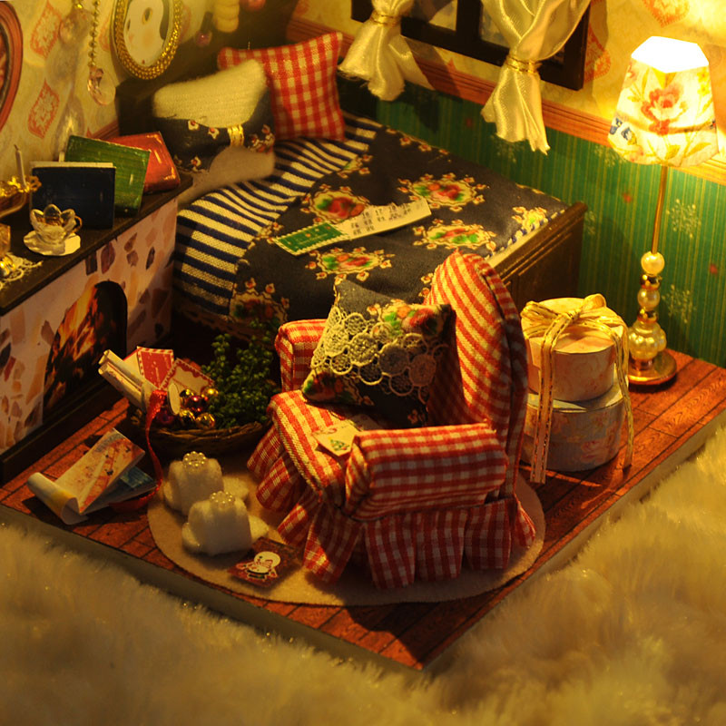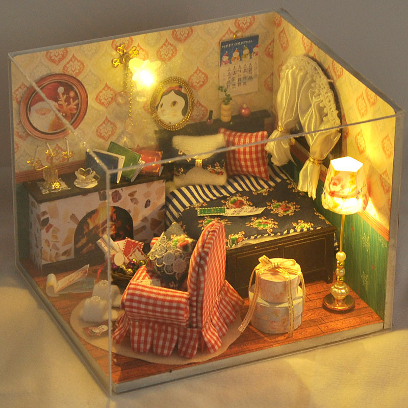 Package Inlcluded: 1 x DIY Xmas Wooden Dollhouse Miniature Furniture Kit(without music )