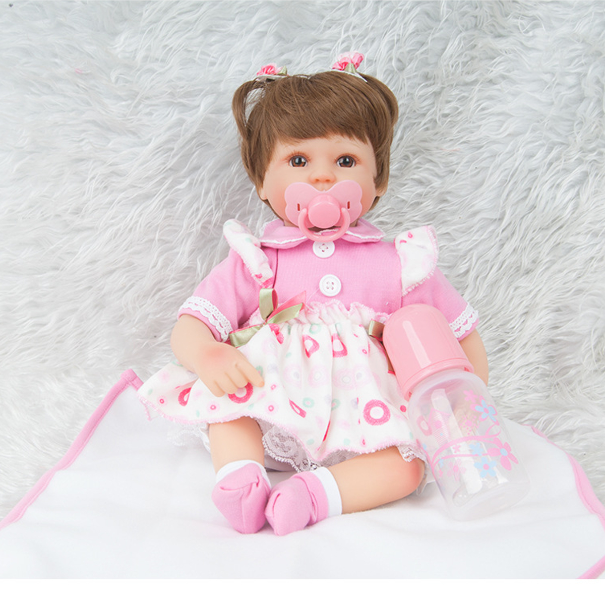 100% handmade. Craftwork with hand printing. Doll's limbs can be movable and can sit and lie down, but can't stand up and speak. High quality soft silicone vinyl with stuffed cotton body. Rooted mohair can be combed and fixed, washable. High-grade acrylic eyes, eyes can't move. Completely hand-drawn translucent nails make the fingers look more nice and vivid. Suitable for young mothers to practice replacing diapers for their baby.