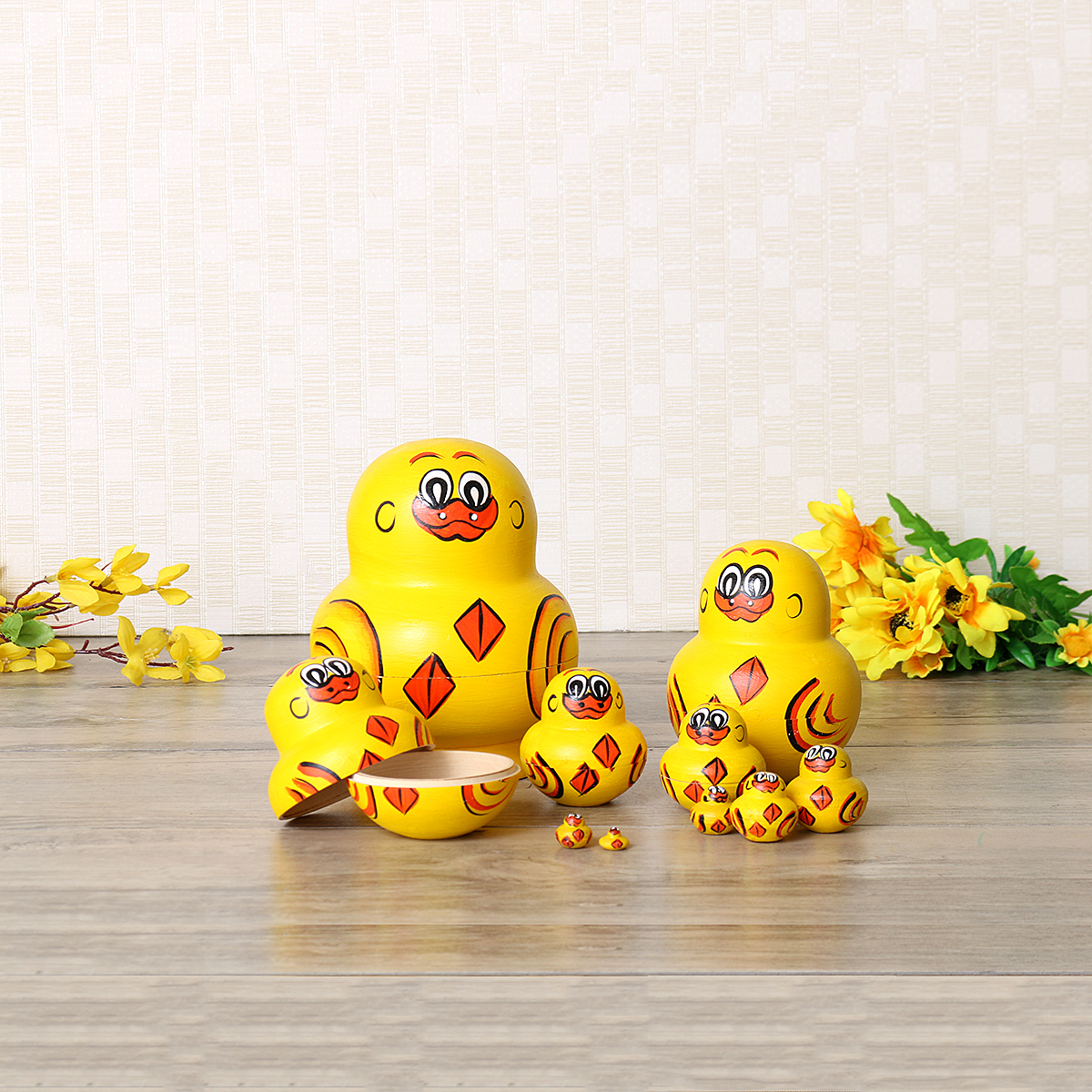 It consists of 10 dolls, all smaller dolls are entering into a bigger one.