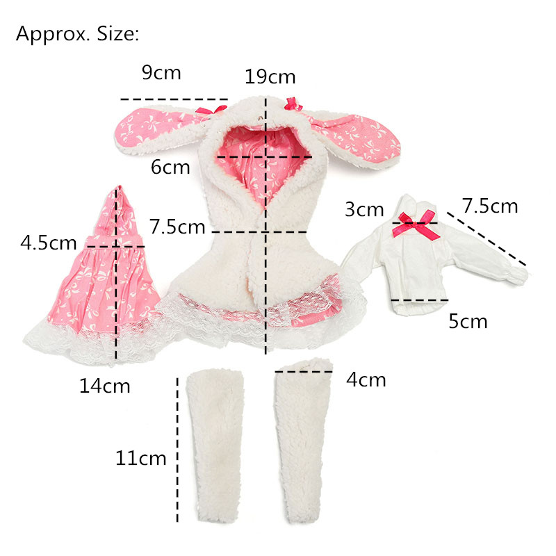BBGirl 30cm 35cm BJD Doll Dress Rabbit Hood Party Fashion Clothes DIY Accessories Toy