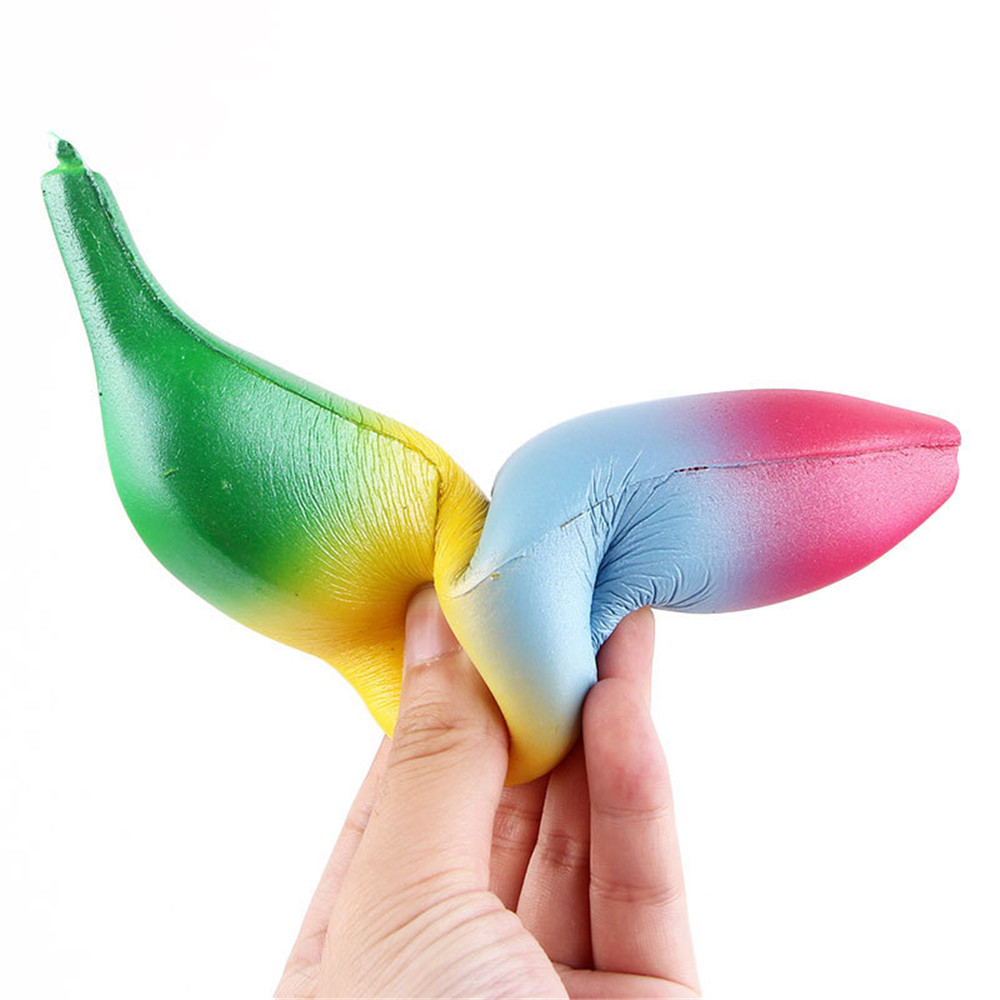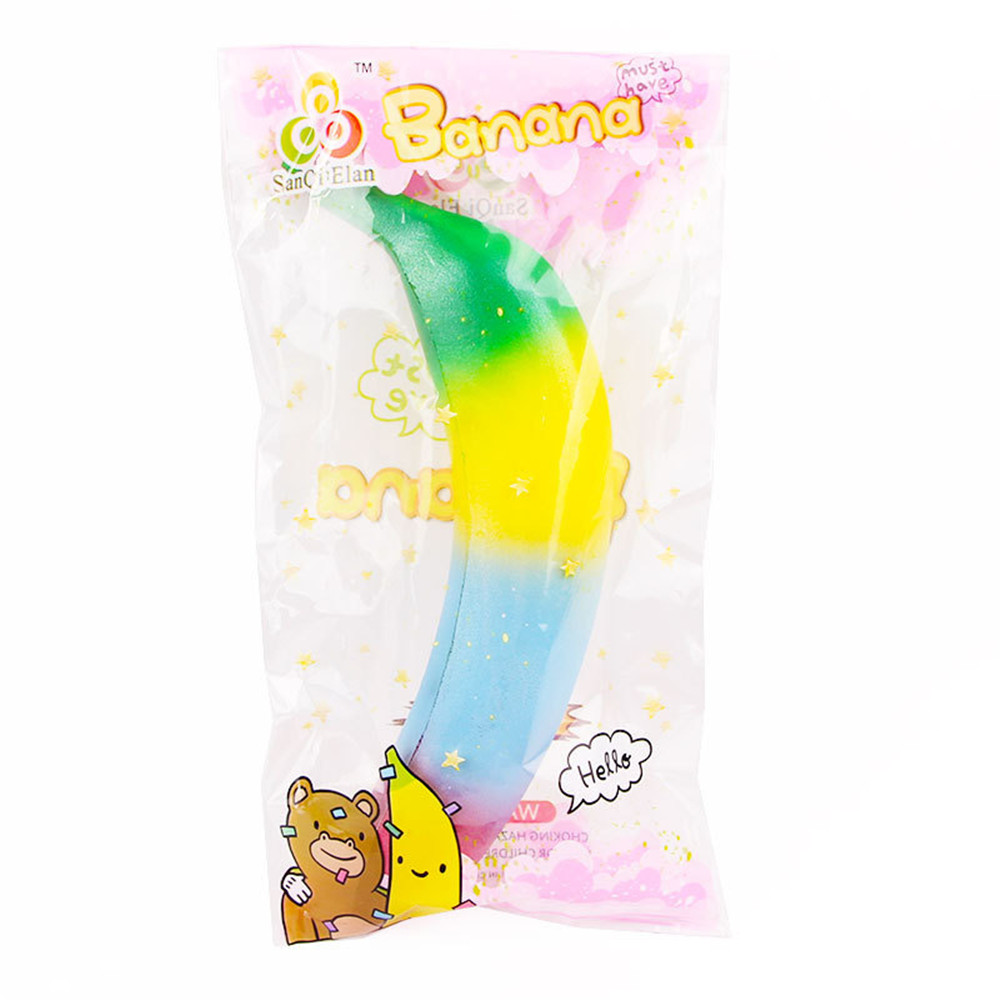 Description: Item: Banana Squishy Size: About 18*4CM Scented: Yes; Sweet Rising Time: 8+ Seconds Material: PU Foam Packaging:Color bag