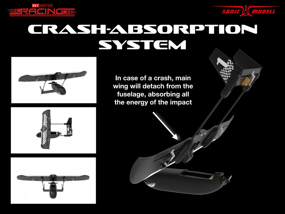 New Crash Absorption system, main wing will detach automatically in a crash, thus to protect the it from breaking.