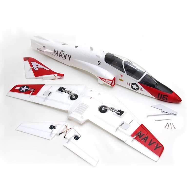 The QT-MODEL T45 aircraft is a the zoom plane for T-45 Goshawk carrier. It is upgraded by adding the carbon tube to the horizontal tail to increase its strength. In addition, it uses the CNC machining anti-vibration landing gear and tail movable brake hook to make the landing gear more solid and realistic.