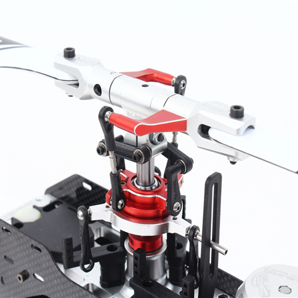 -With flybarless head rotor set. 6061T aluminum precision CNC processing technic, equipped with silver-red present more high fidelity.