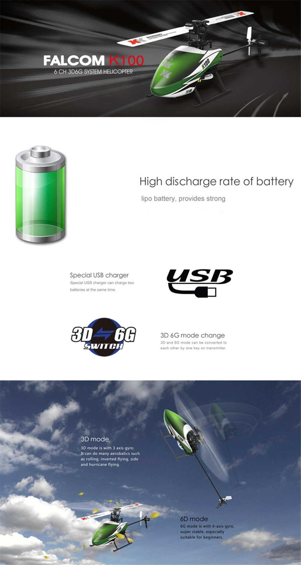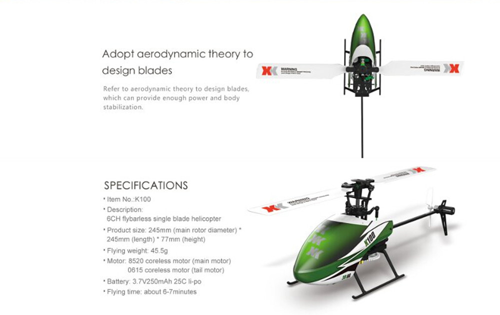 XK K100 Falcom 6CH Flybarless 3D6G System RC Helicopter BNF(Compatible with FUTABA S-FHSS.Without transmitter