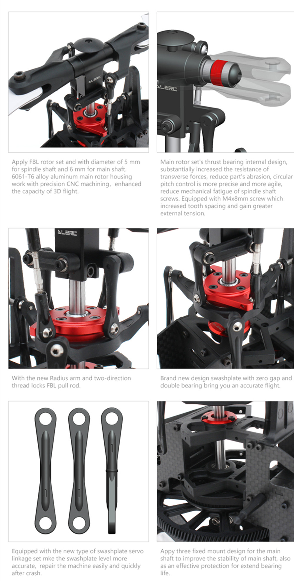 - Brand new design swashplate with zero gap and double bearing bring you an accurate flight.