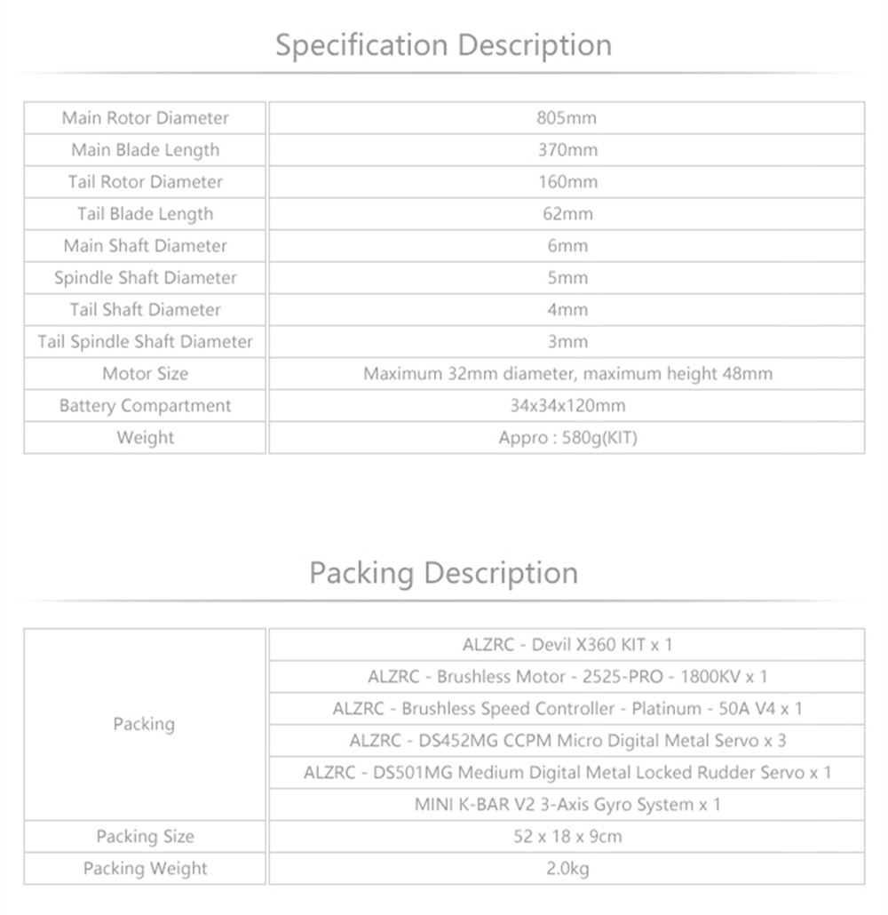 1* ALZRC X360 RC Helicopter Kit
