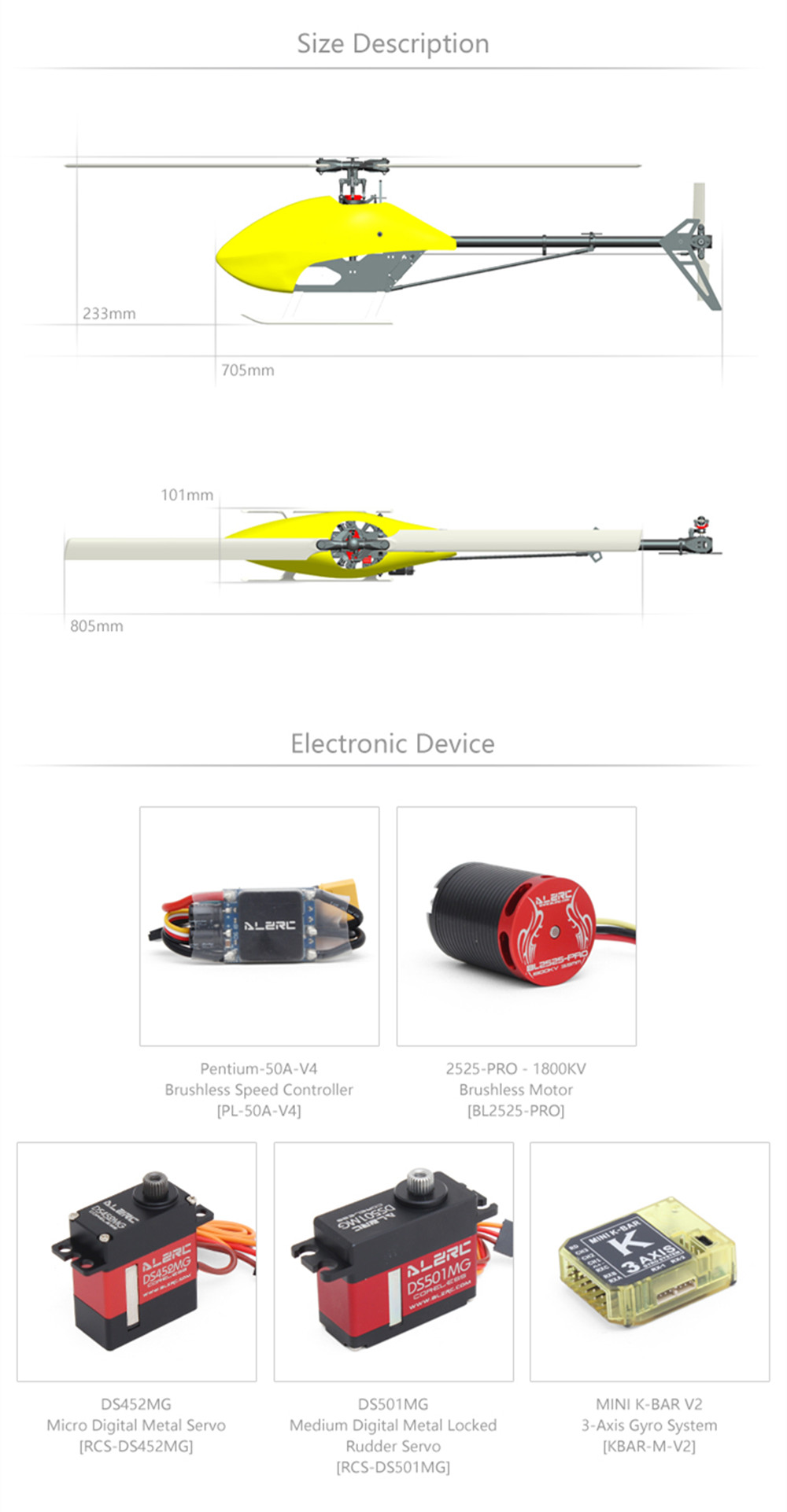 Servo: 3* ALZRC DS452 Servo & 1* ALZRC DS501 Servo