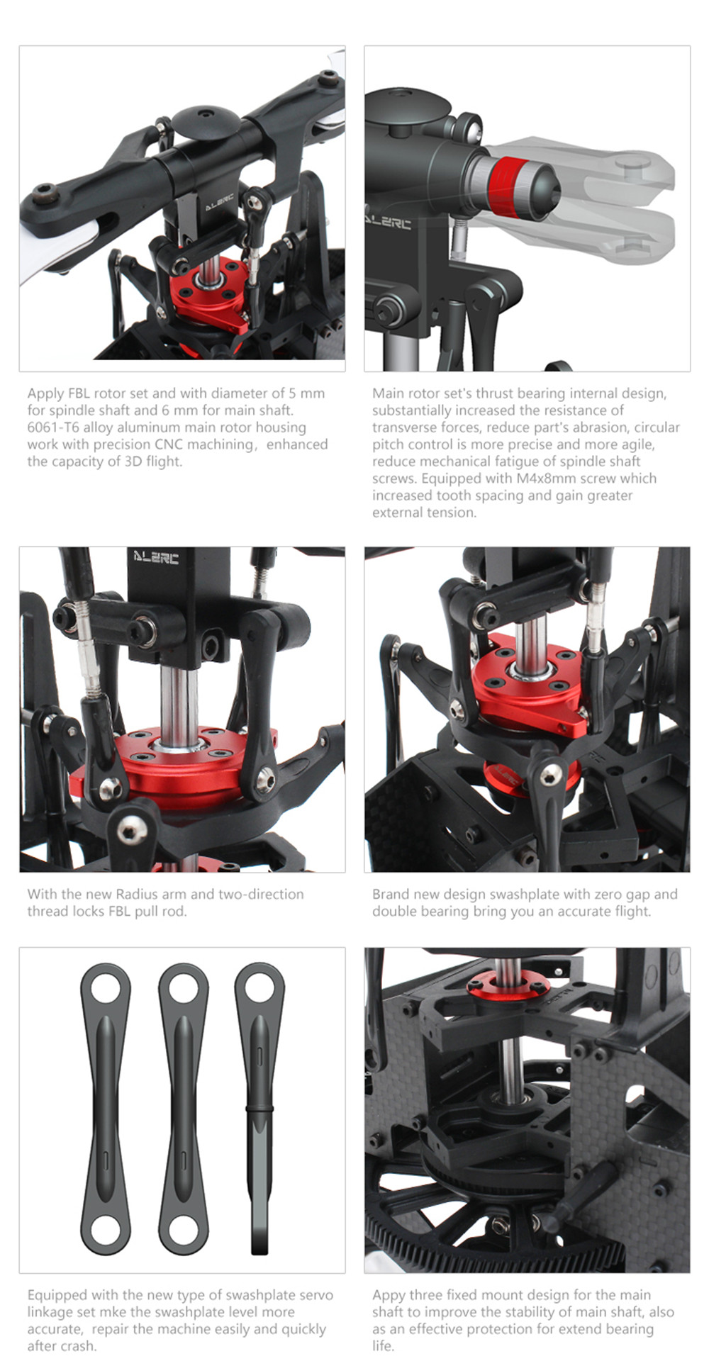 - Brand new design swashplate with zero gap and double bearing bring you an accurate flght.