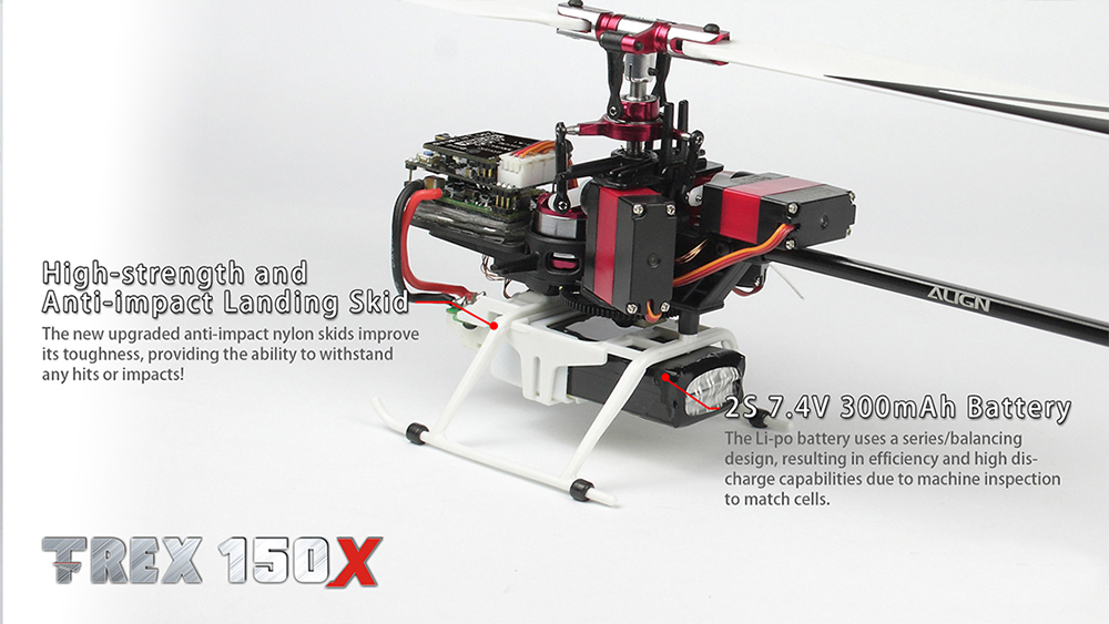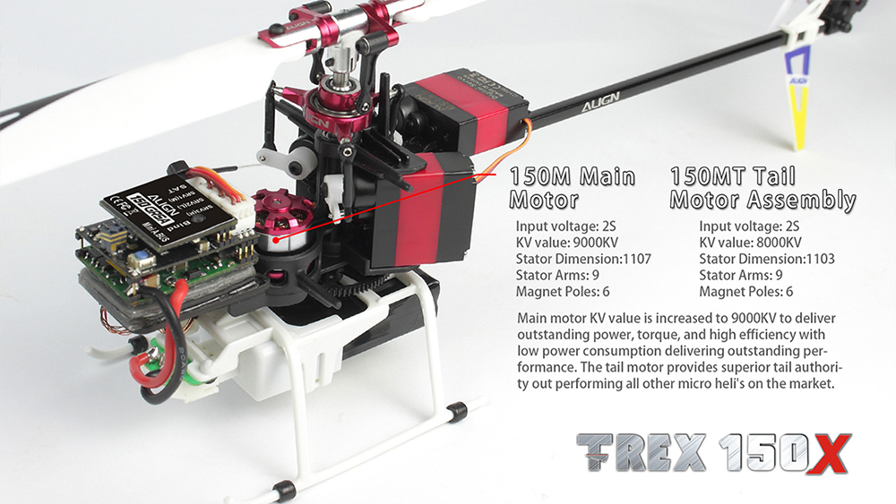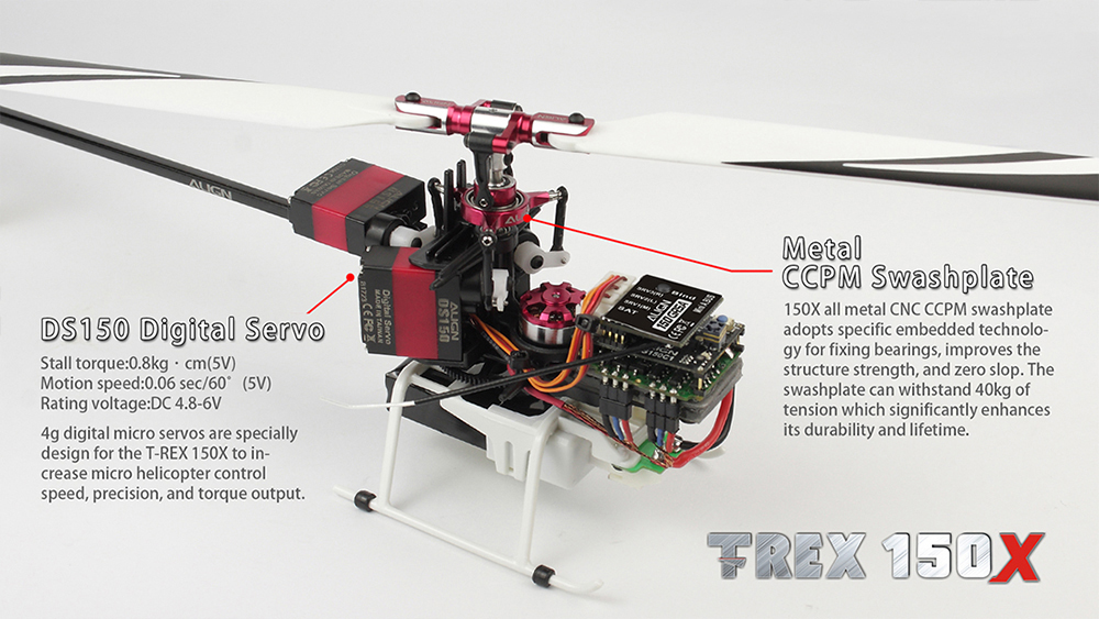 Accessories: 2 Sets x 150 Main Blades 1 Set x 150 Tail Blades 1 x 150m Main Motor(9000kv/1107) 1 x 150m Tail Motor(8000kv/1103) 1 x DS155 Digital Servo 2 x DS150 Digital Servo 1 x 150 Remote Extension 2 x 7.4v 300mAh/30C Lipo Battery