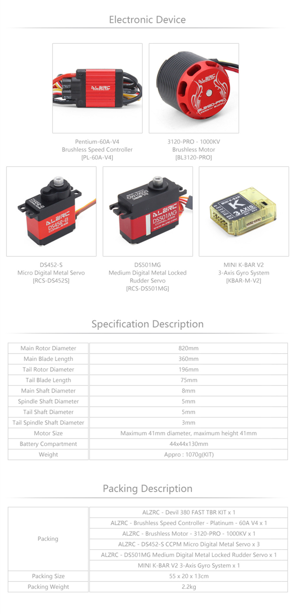 1* ALZRC 380 FAST TBR 3-Blade RC Helicopter Kit
