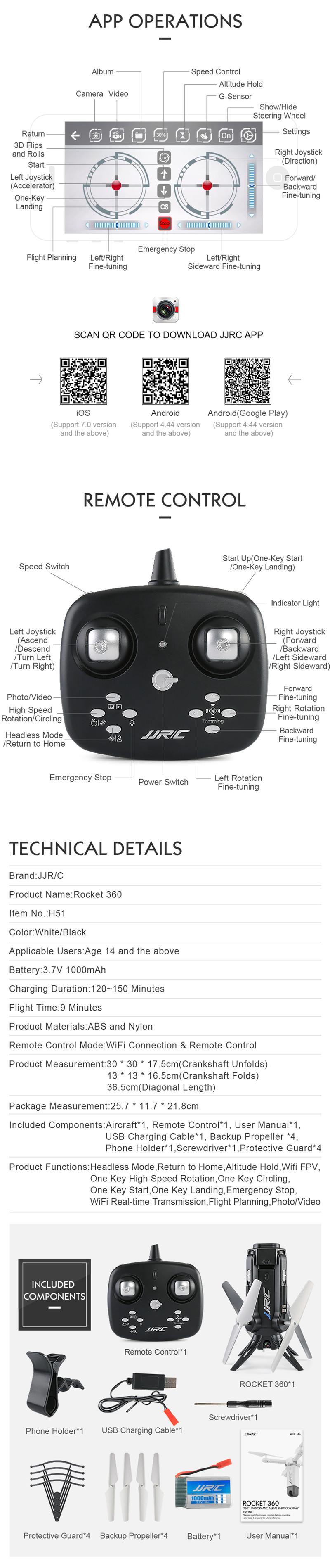 JJRC H51 Rocket 360 WIFI FPV With 720P HD Camera Altitude Hold Mode RC Drone Quadcopter