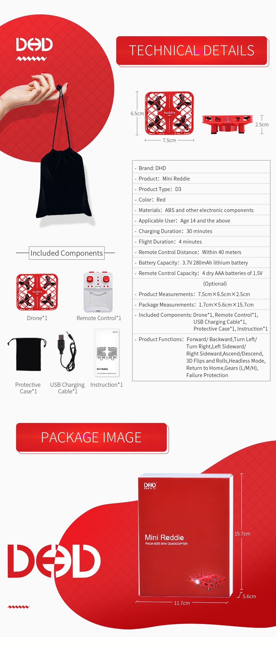 You're reviewing:DHD D3 Mini Mesh One Key Return Headless Mode 2.4G 4CH 6-Axis RC Drone Quadcopter RTF