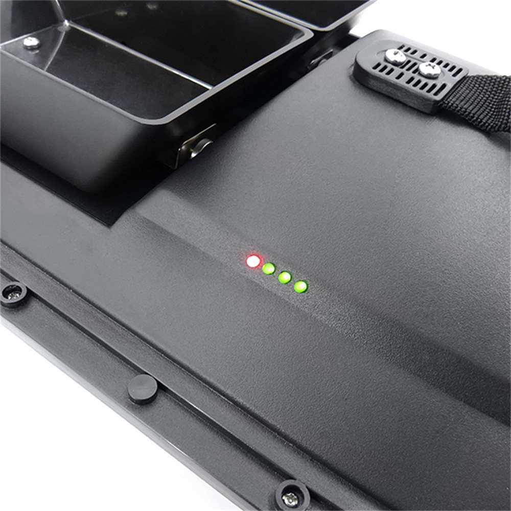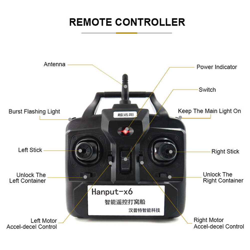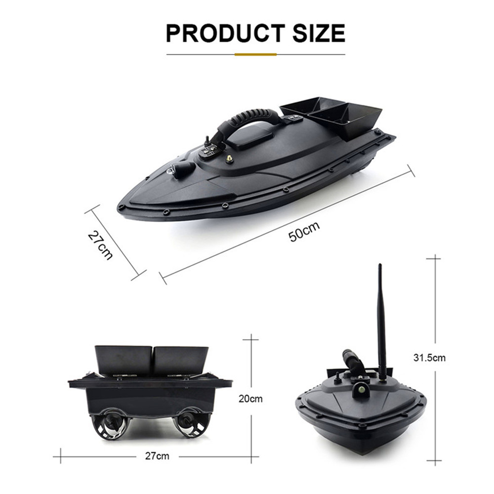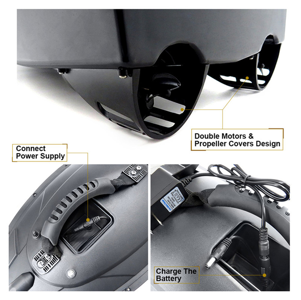 1.ABS engineering material hull body injection molding 2.Large capacity rechargeable battery,5200mAh lipo battery 3.Double motor with the boat,large load design,it can load about 1.5kg 4.It can remote about 500m distance without barrier 5.Waterproof grass double motor design,with the waterproof cover 6.Two-silo design allows free control of spotting,each bait can be opened separately. 7.The night light adopts strong blue light design to identify the direction in the night flight 8.Dedicated digital automatic frequency modulation device 9.Strong wind resistance