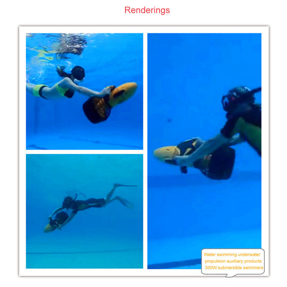 | Basic information | Item name:underwater scooter Color:yellow Speed:about 4.5-5.5km/h Max depth: about 30m Maximum thrust:about 12kg | Power System | Motor:300 watt,24VDC,dual speed |