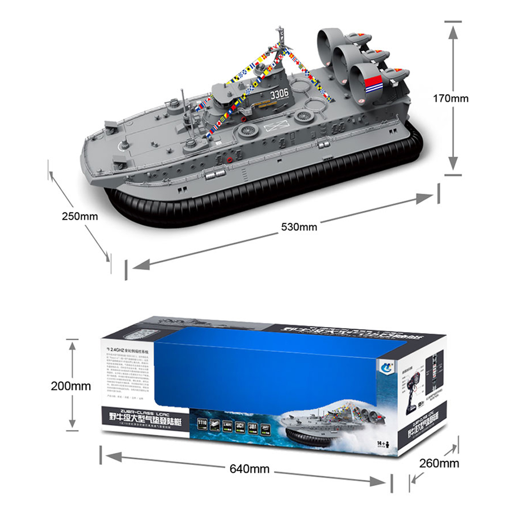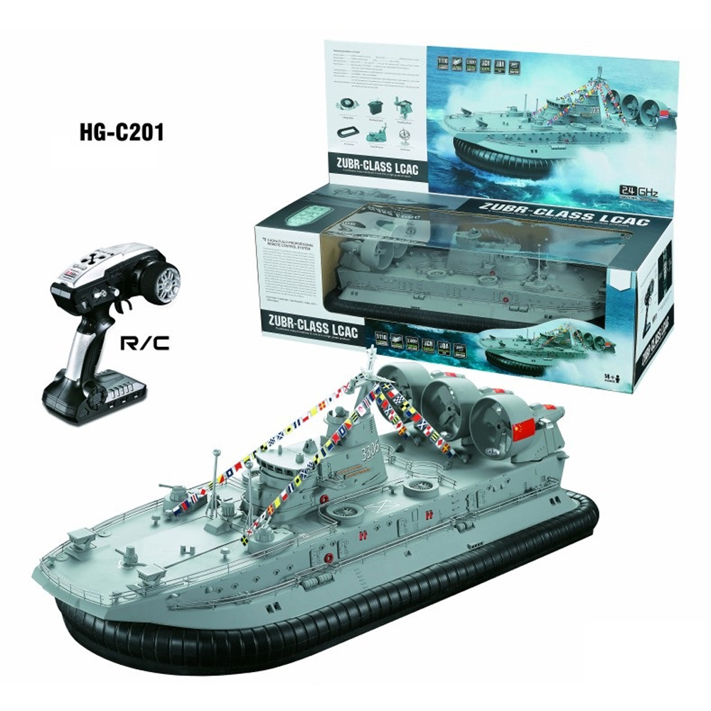 Brushless Warship RC Boat 2.4G 1/110 Ship Model HG-C201 Landing and water Air Cushion Landing Craft