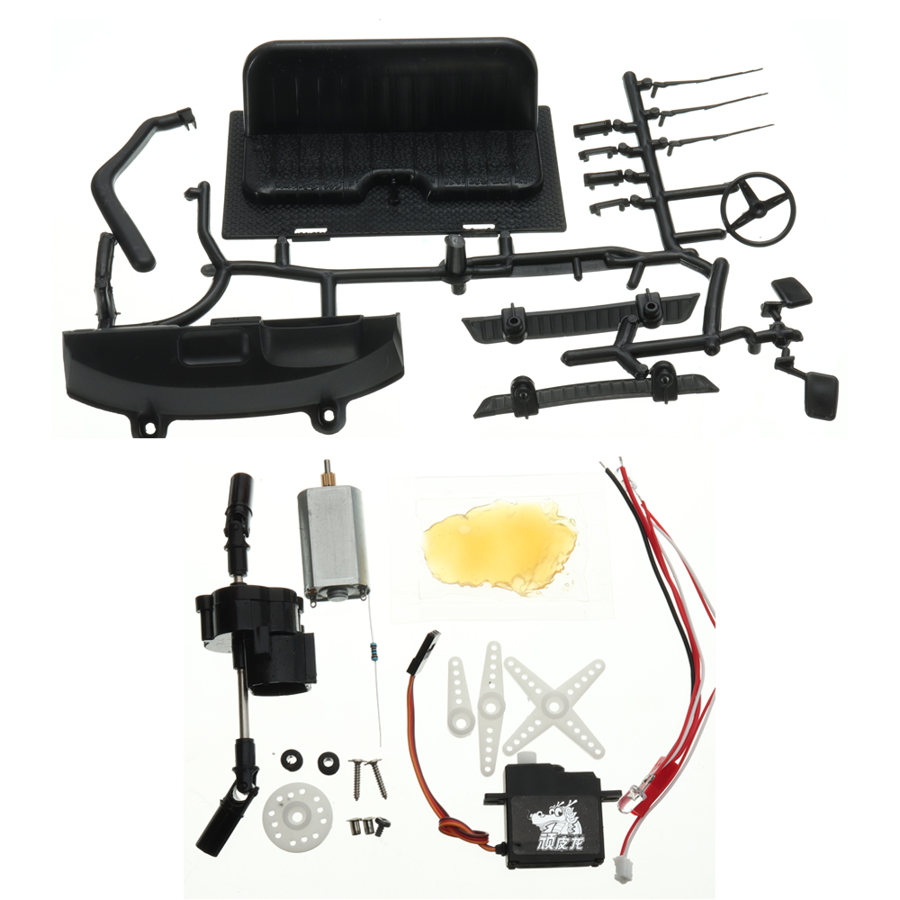 DIY RC Car Kit Description:| Basic information | Color:Red and blue Model:WPL C-24 Scale:1:16 | Power System | ESC: Brush (not included) Servo:included Motor:included 180 |