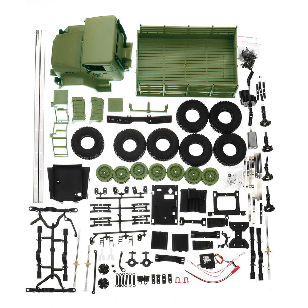 | Basic information | Color:Green and yellow Model:WPL B16 Scale:1:16 | Power System | ESC: Brush(Not included) Motor:180 Servo:included Motor:included |