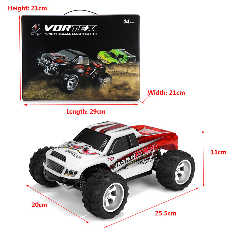 | Basic information | Brand:WLtoys Item No.:A979B Scale: 1/18 Color:Black and red Max Speed:70km/h | Power System | Motor:540 Brushed Motor |