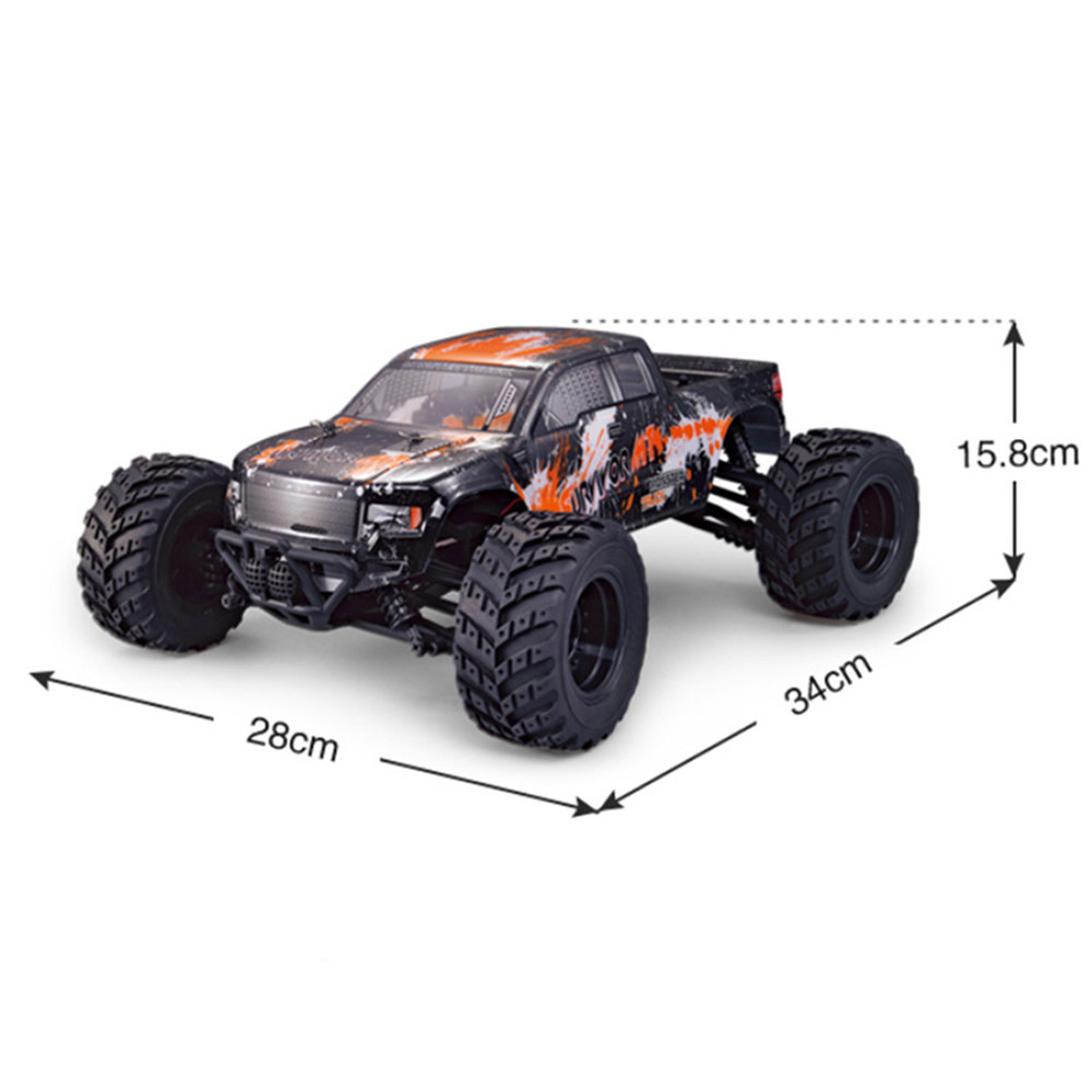 | Basic information | Brand:HBX Item No:12813 Scale: 1/12 Color:Blue and orange Max Speed:33km/h | Power System | ESC:40A Stepless ESC Motor:RC390 Brushed Motor Servo:5 wires 2.2KG Servo Planetary Differential |