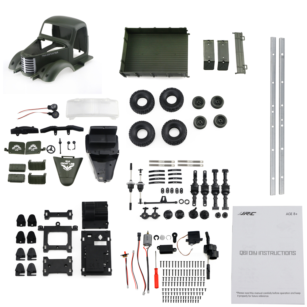 | Basic information | Color:Greenand blue Model:JJRC Q61 Scale:1:16 | Power System | ESC: Brush (not included) Servo:included Motor:included 130 |