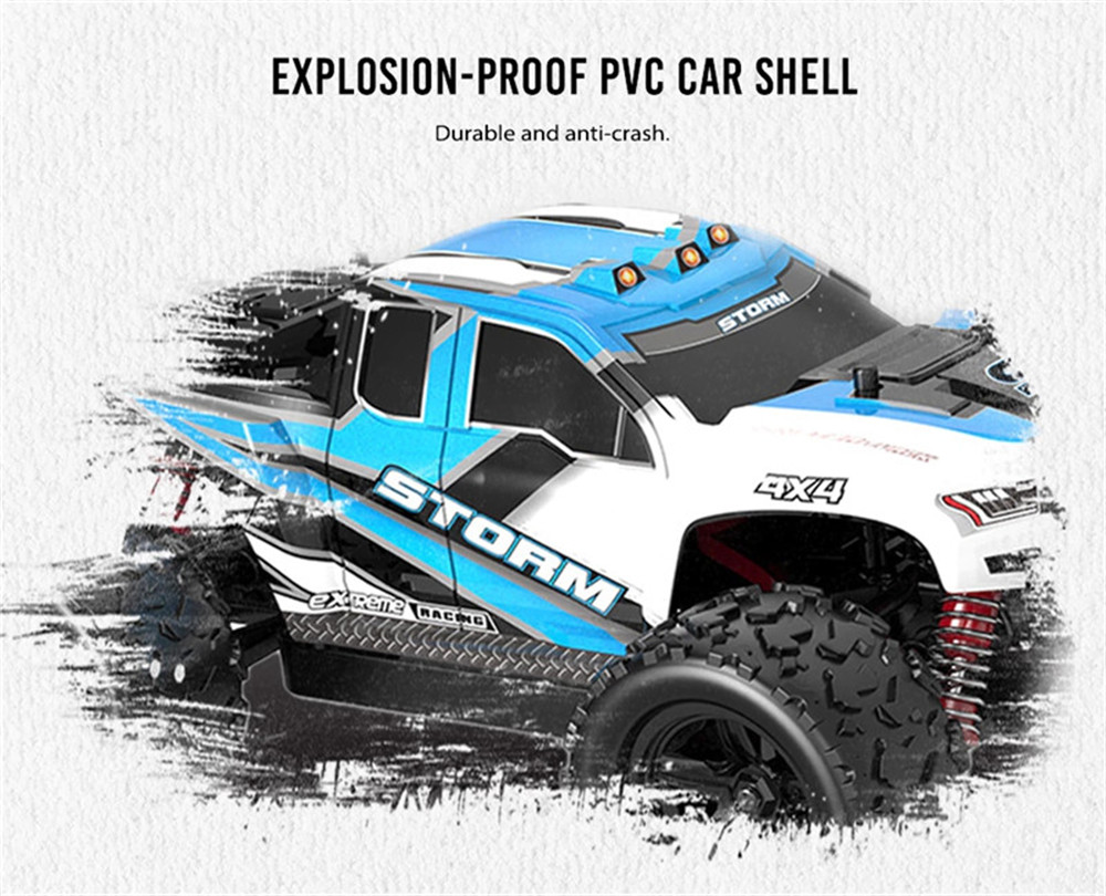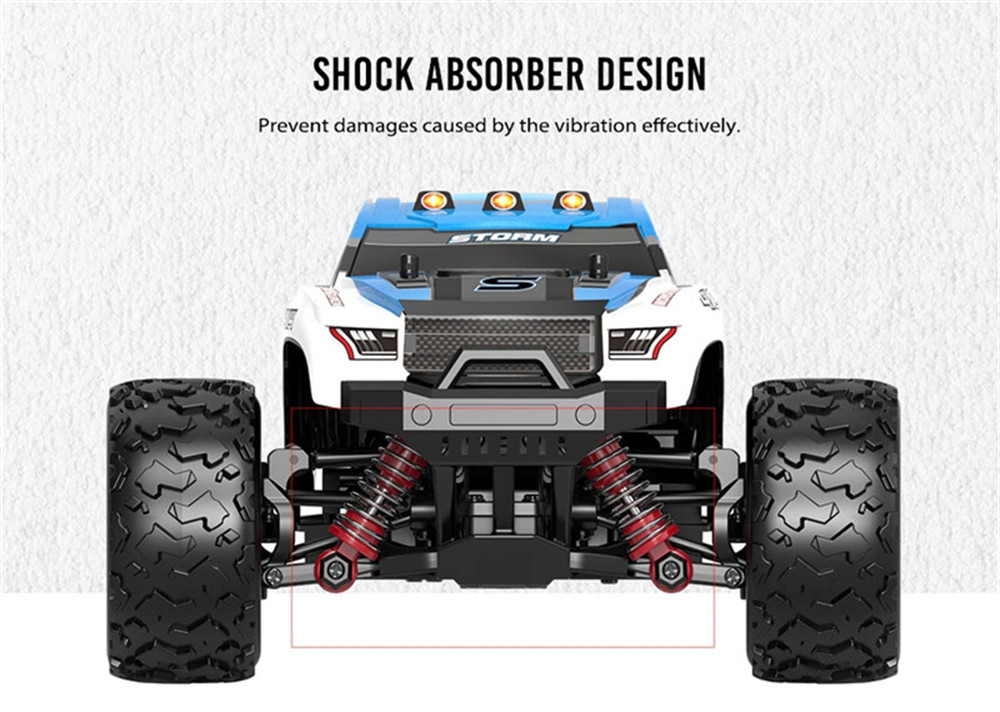 | Basic information | Brand:HS Item No.:18301/18302 Scale: 1/18 Color:Blue and red Drive Type: 4 WD Max Speed:36km/h | Power System | ESC: ESC / receiver integrated control Motor:RC380 Brushed Servo:1.5kg 5 wires servo Differential structure:Planetary differential Governor:30A electronic stepless speed regulator |