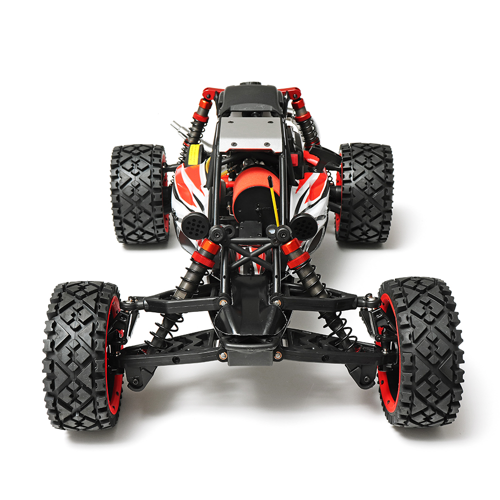 Features: Metal differential 8000 clutch Symmetrical Steering Governing exhaust pipe All-terrain (four generation wheels) Second-generation enhanced front and rear suspension This car is with the Potter Tail wheel kit 9MM replaceable shaft pin axle CNC metal rear shock absorber bar CNC metal shell front bracket