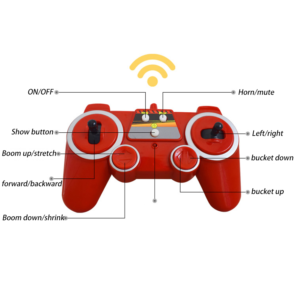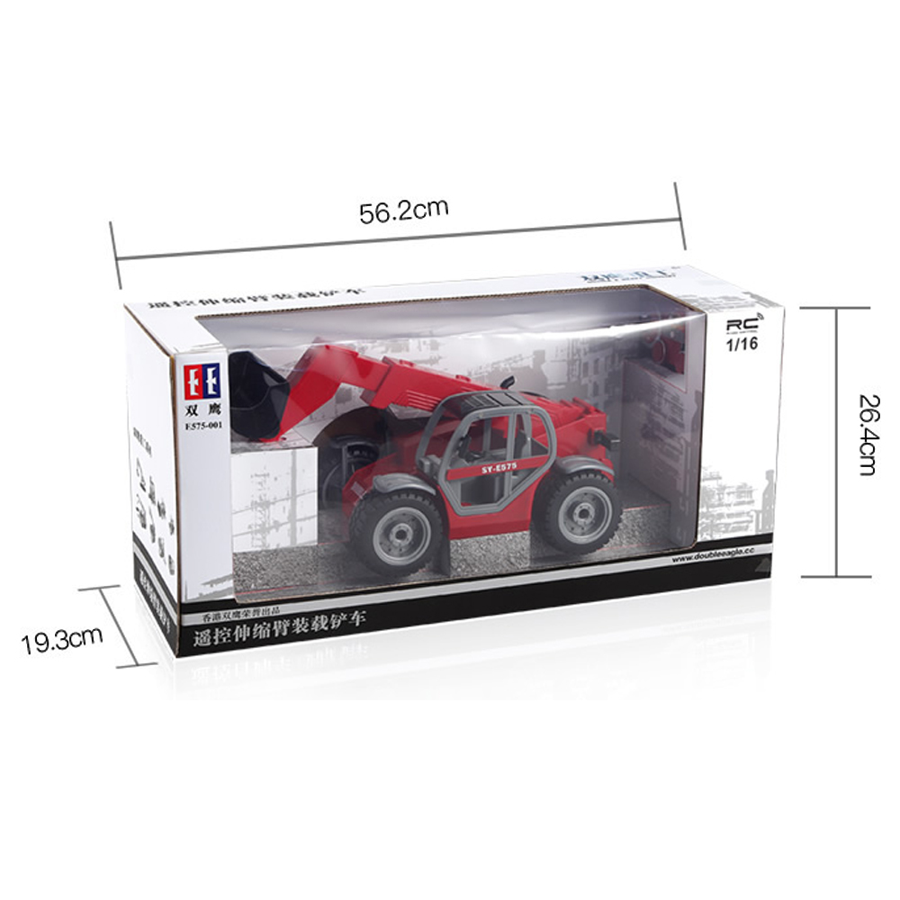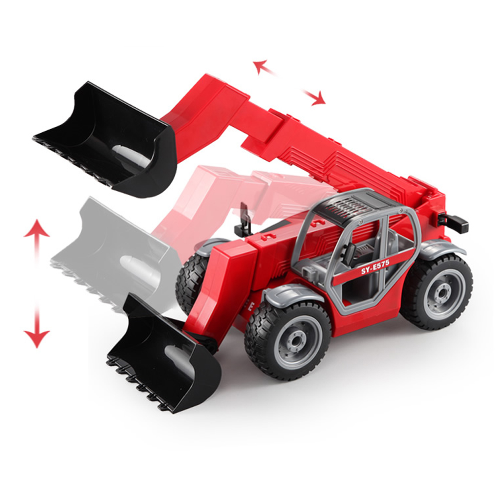 Feature: 1. High simulation telescopic boom forklift appearance 2. The remote control boom rises and contracts, descends and contracts 3. Bucket can be remotely loaded and unloaded 4. Anti-real speed sound and running sound 5. Give anti-real stone, can simulate operation 6.2.4Ghz can be used for multiple vehicles at the same time, forward and backward, turn left and turn right