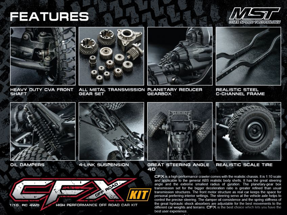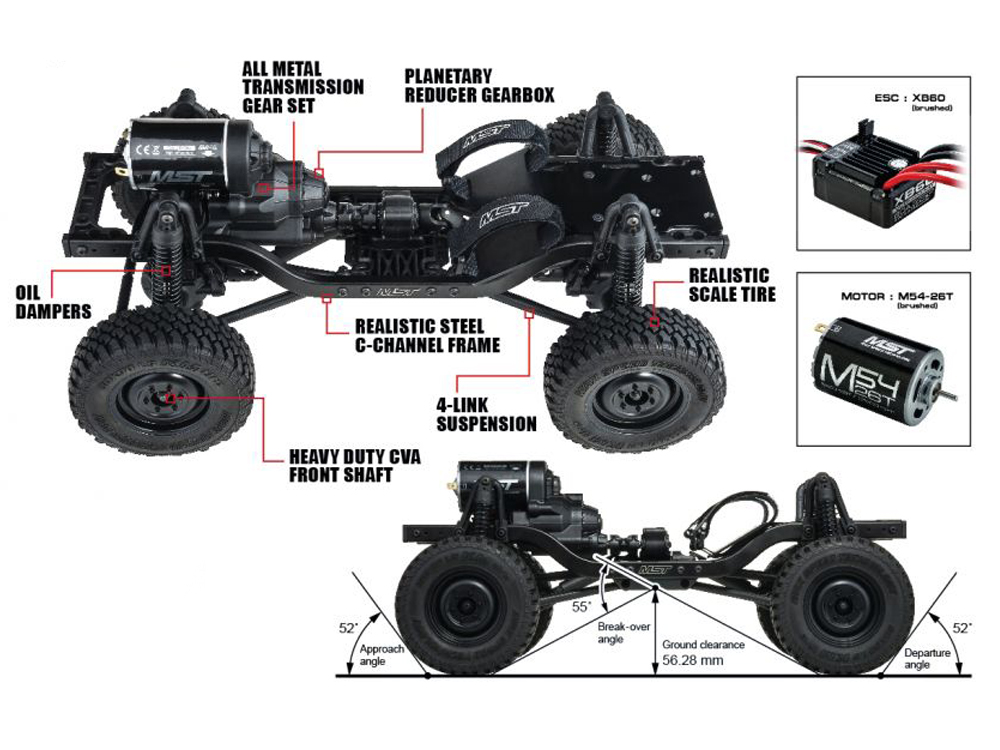 | Basic information | Brand:MST Model:1/10 Speed:15km/h | Power system | Servo: brush XB60 Motor:Brush M35-26T |