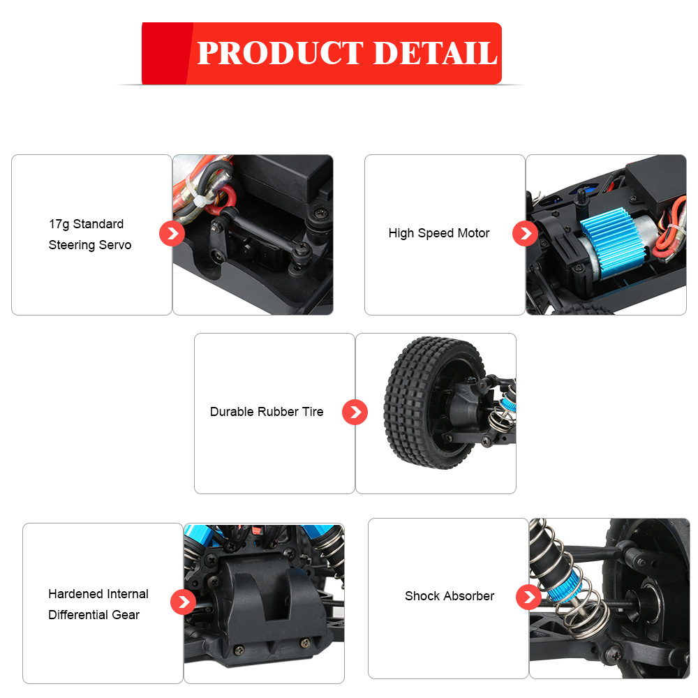 | Basic information | Brand:HT Item No:C604 Scale: 1/16 Color:Random delievery from red and blue color Max Speed:about 60km/h | Power System | ESC:Integrated high temperature resistant board Motor:Brushed motor Servo:High performance Servo |