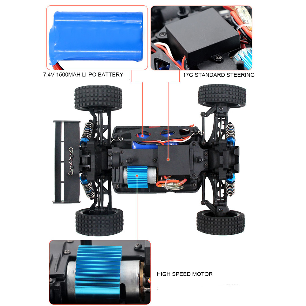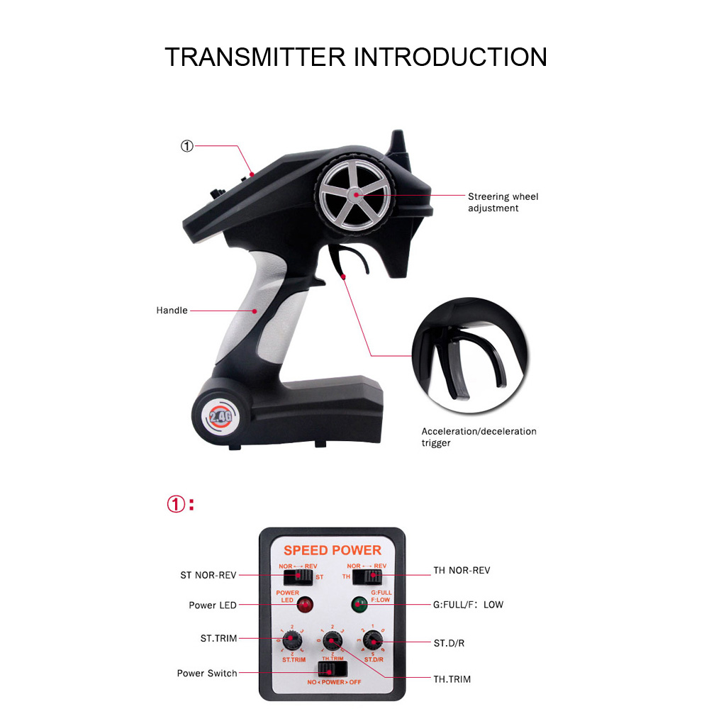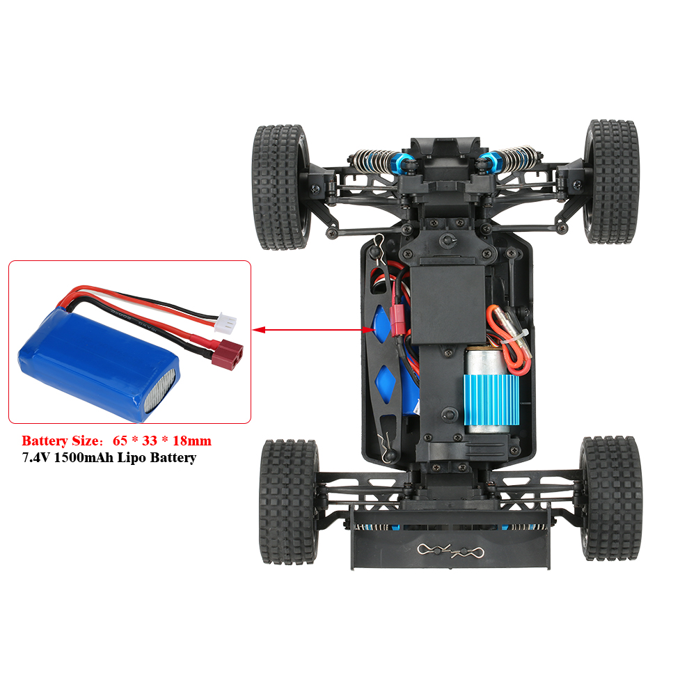 | Transmitter | Frequency: 2.4G Channel: 4CH Remote Distance:100m or more (depending on the environment) | Battery | Car Battery: 7.4V 1500mAh T plug Lipo battery(included) Charging Time:About 120 minutes Using Time:About 14 minutes |