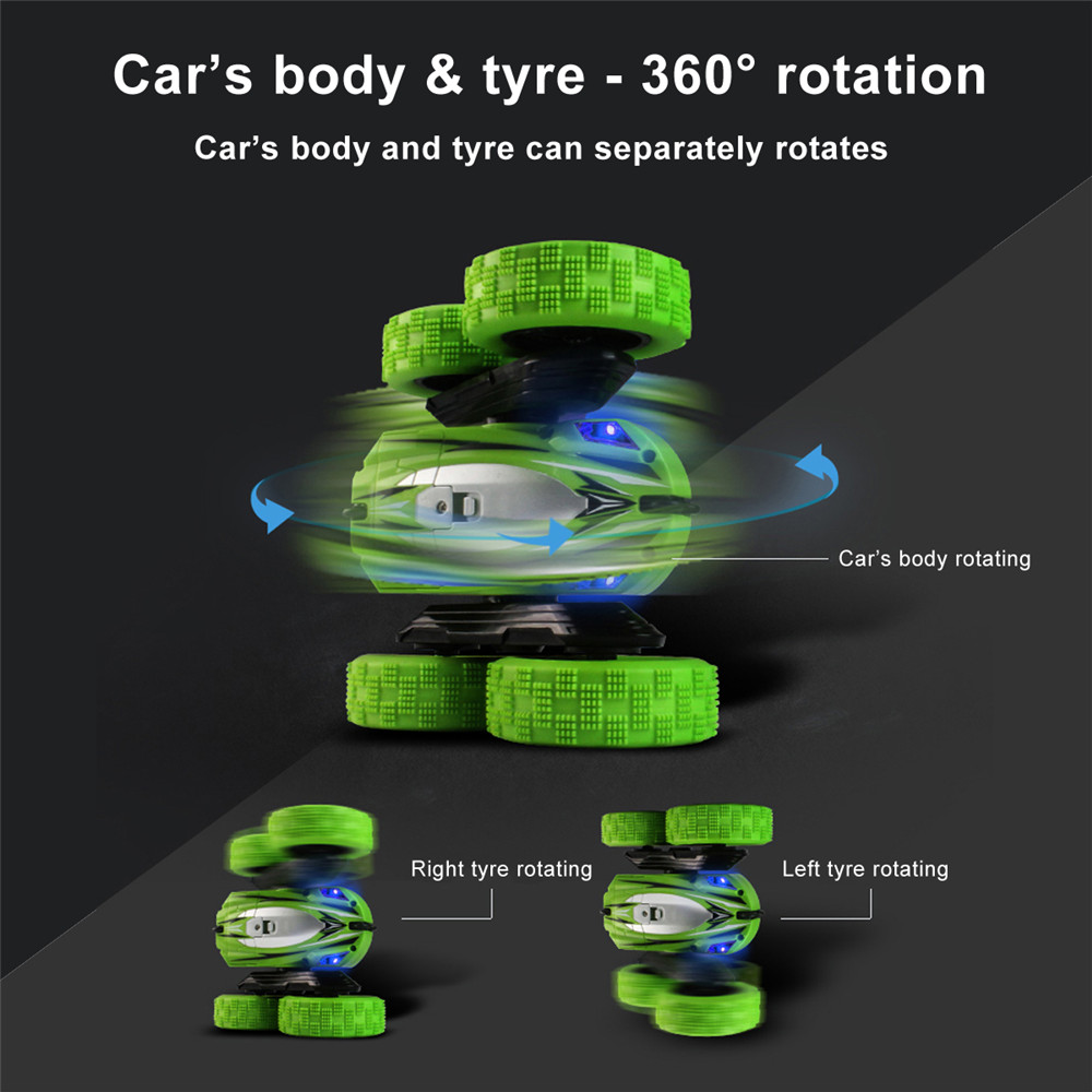 | Basic information | Model:Mini stunt rc car Color:green | Power System | Motor:Brush Charge:Included Control way:Radio control |
