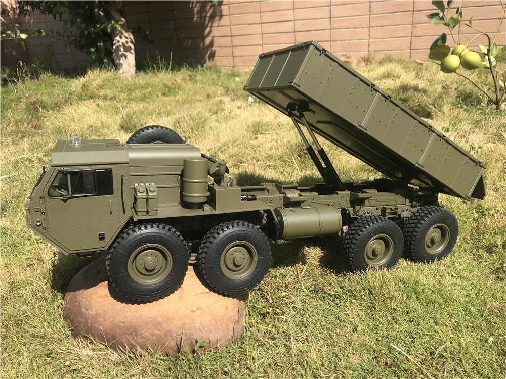 Features: Central transmission secondary mechanical gear position is adjustable (upgradable remote adjustment) The chassis of the vehicle is made of zinc alloy The front and rear axles adopt a conical gear to straight tooth high-load reduction transmission structure Spring steel plate shock absorber + telescopic double shock absorption Variable stroke ball type universal joint shaft Front and rear independent link type bridge system 8 rounds full-time drive, large traction can pull all kinds of equipment Steering gear control disc can be freely disassembled 1/12 full scale rc car model The first 4 wheels adopt the wire rope pulling structure to realize the four-wheel synchronous steering