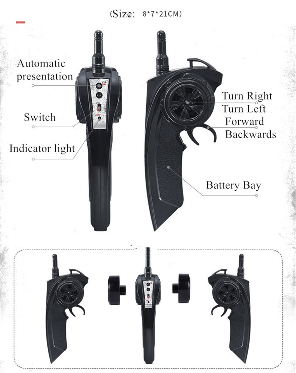 | Transmitter | Frequency: 2.4G Control distance:about 30m Battery:2X1.5v AA(not included) | Battery | Battery: 4.8V 700mAh Lipo(included) Charger time:about 3hours Using time:about 15-20minutes |