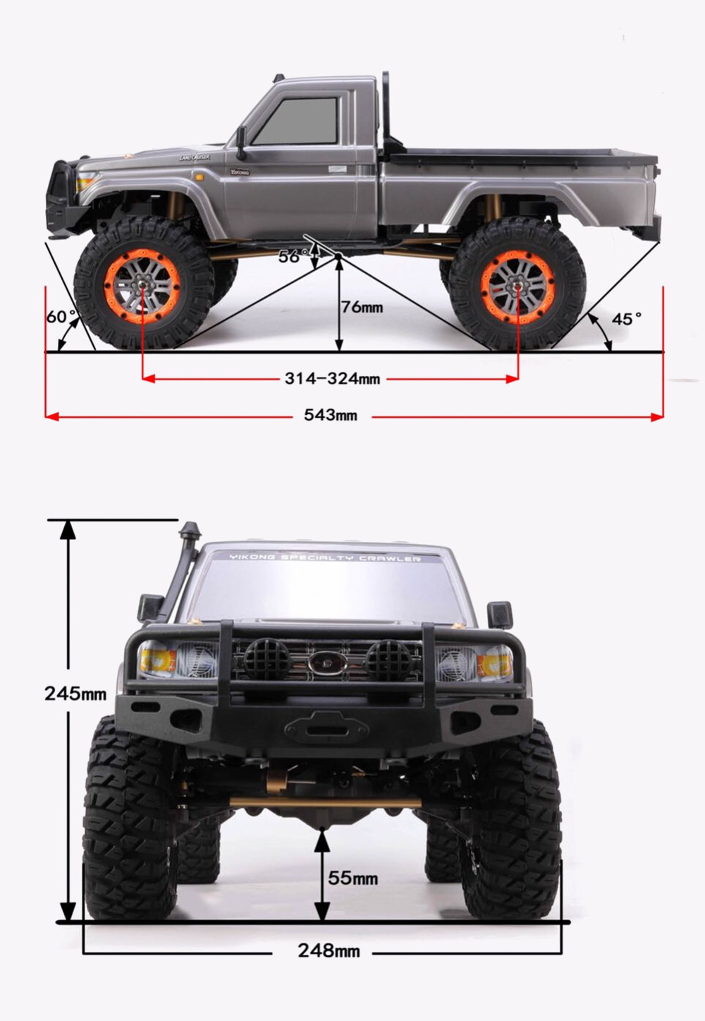 | Other | Car Weight:About 3500g Packaging Weight:Approx.4750g | Dimension | Assembled Car Size:540*250*240mm Wheelbase:315mm |