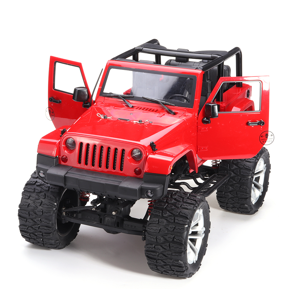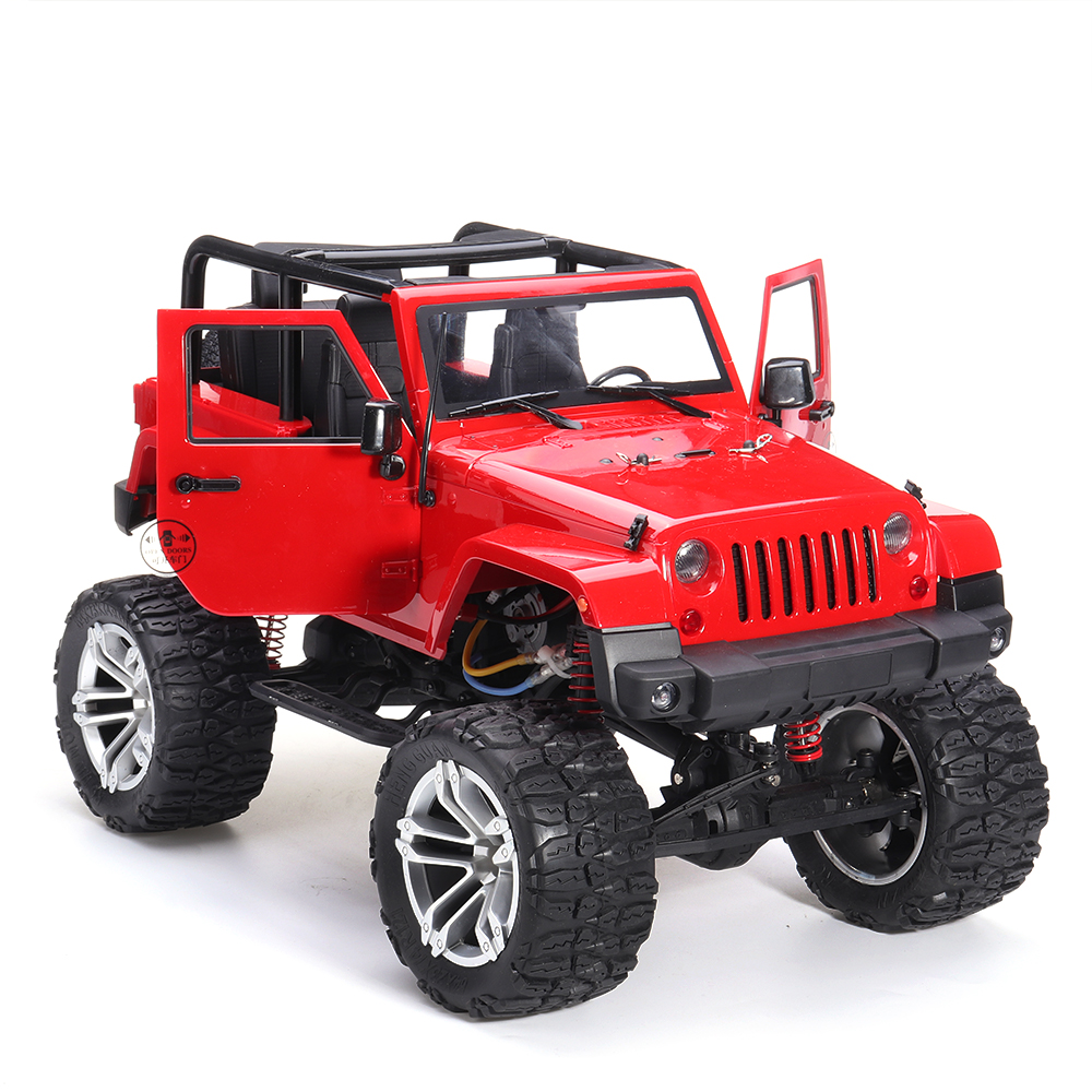 Featues: This rc car can move forward,backward,turn left/right,and LED light function,the doors can be opened,proportional steering and throttle The motor gears can be set,26T/28T/30T Adjustable secondary mechanical gear of central transmission Up to six transmission ratios can be set Front and rear axles adopt tapered-to-straight high-load reduction gearing Large stroke damping adjustable shock absorber Variable stroke ball type universal drive shaft Front and rear independent link type bridge hanging system