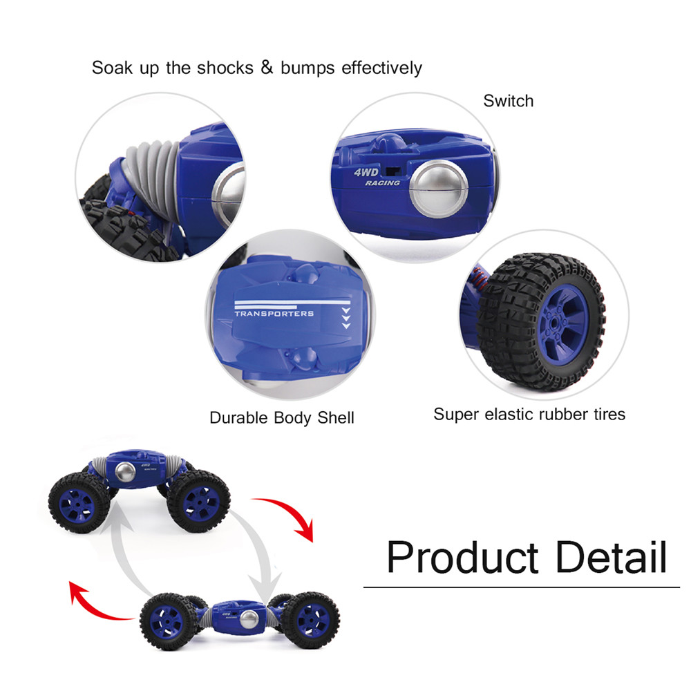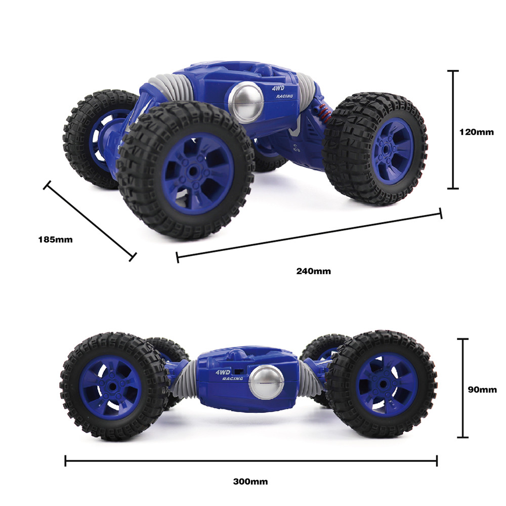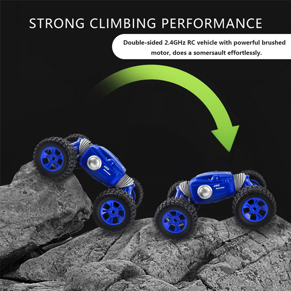 Double-sided 2.4GHz RC vehicle with powerful brushed motor, does a somersault effortlessly.