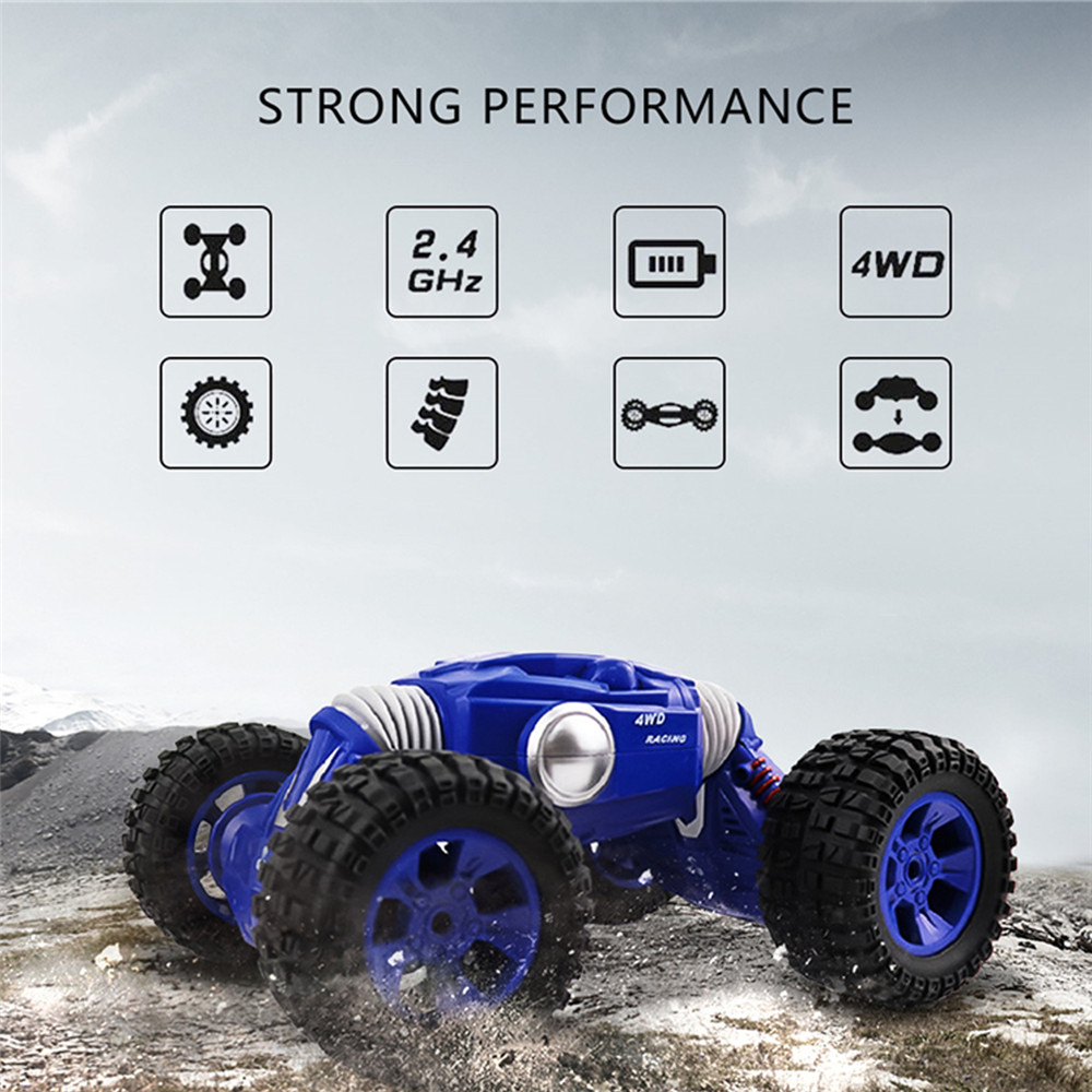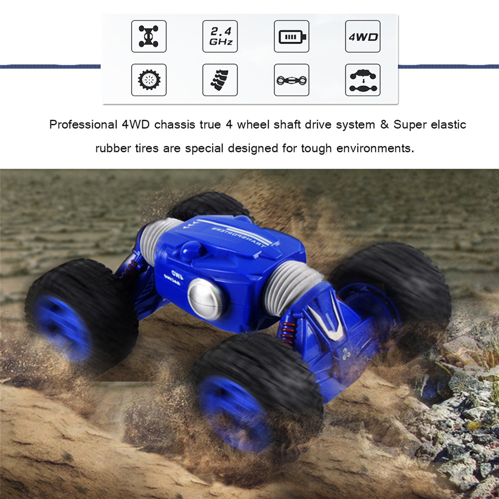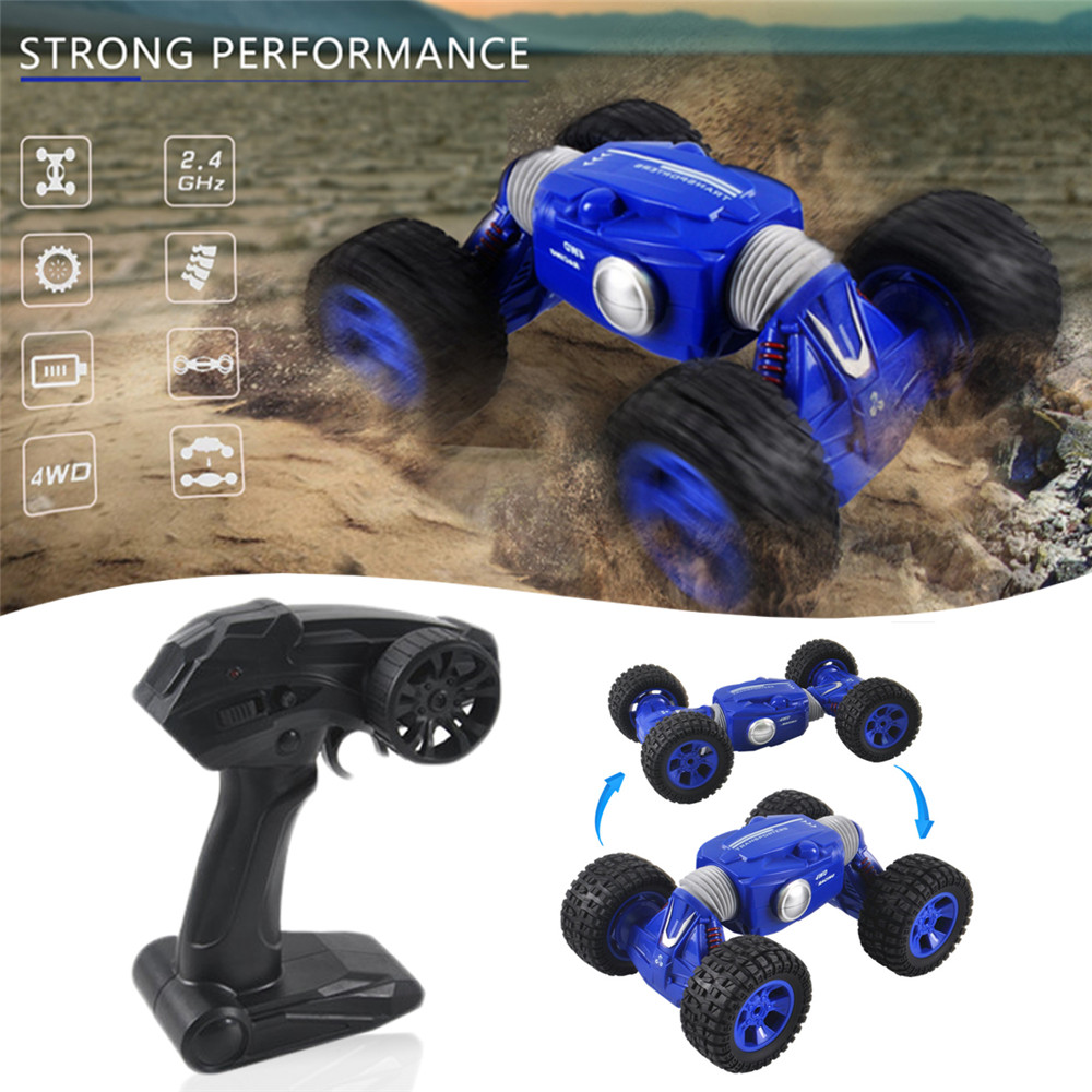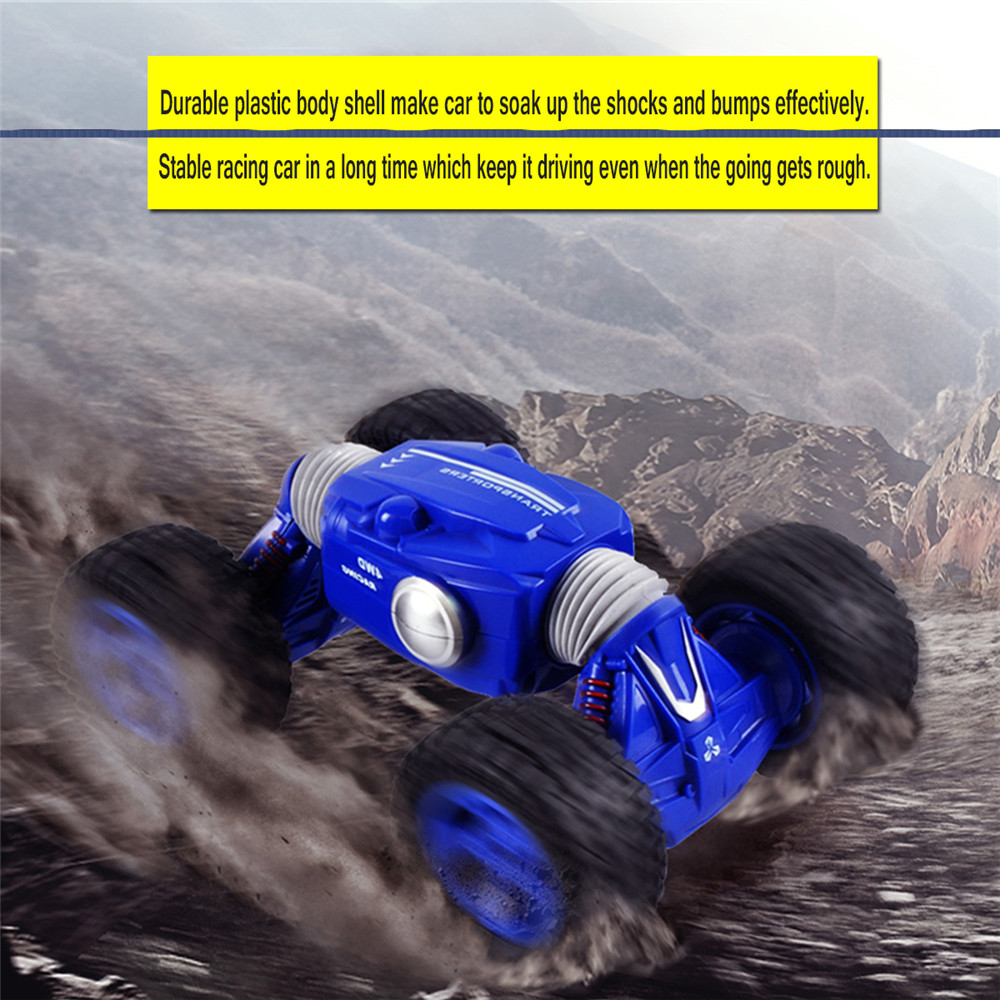 Double-sided 2.4GHz RC vehicle with powerful brushed motor, does a somersault effortlessly.