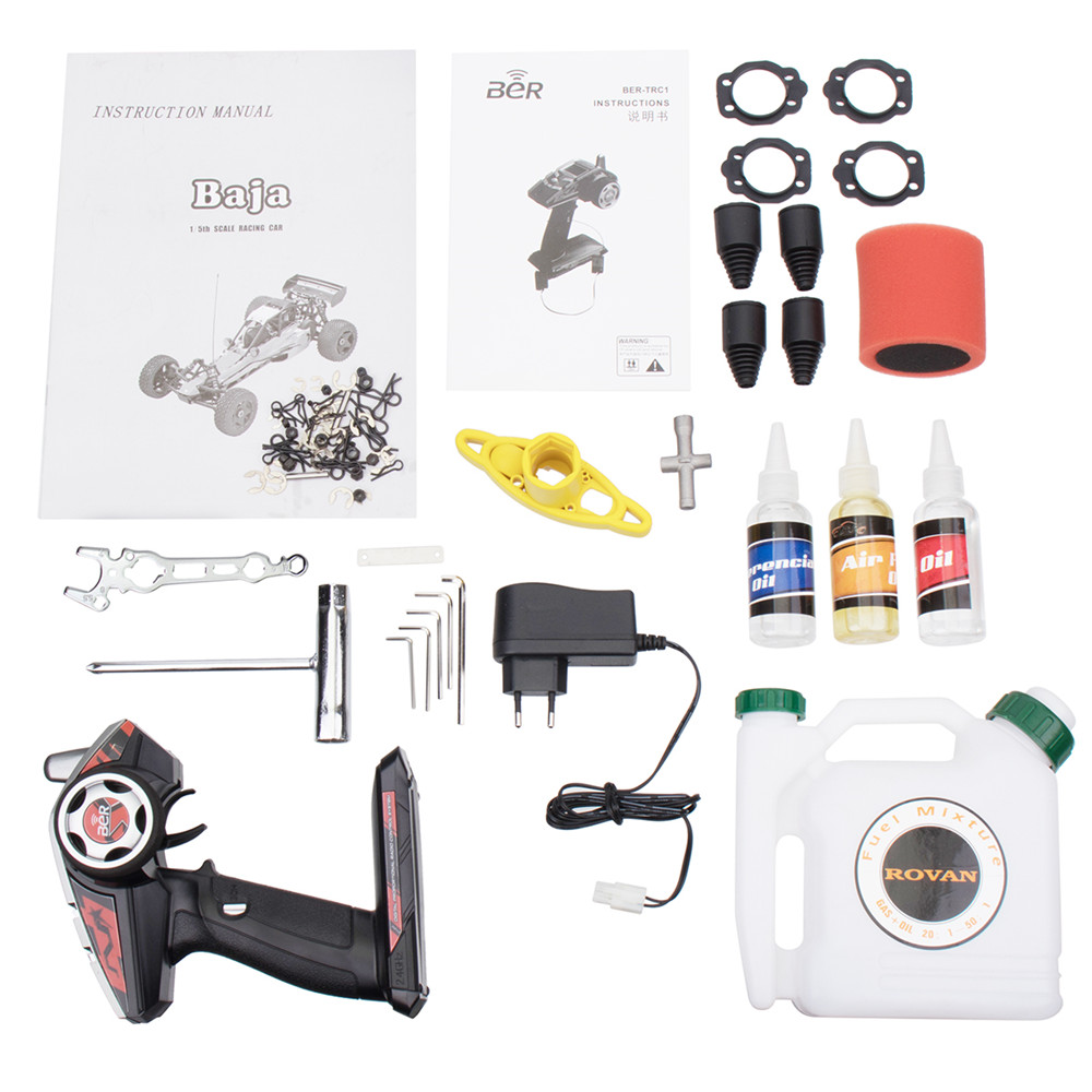 Motor: 36cc single-cylinder air-cooled two-stroke four-point fixed-easy start-up gasoline engine (standard Walbro1107 carburetor, NGK spark plug) Servo: 18KG digital full metal gear throttle servo 55KG digital metal gear steering steering gear