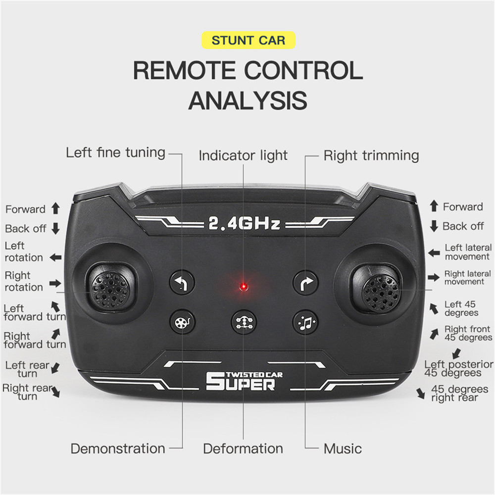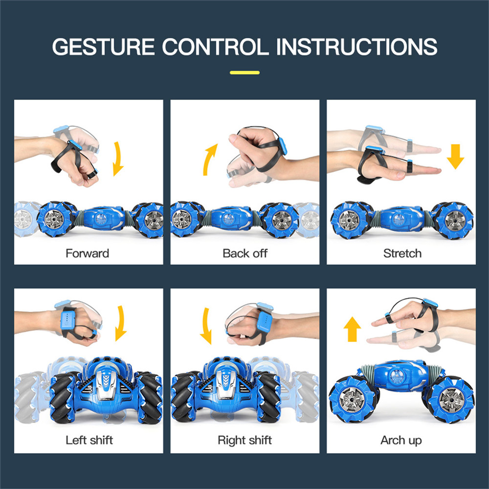 You're reviewing:222-5 1/12 2.4G 4WD RC Car Stunt Vehicles Two-Sided Gesture Induction Twisting with Light Music Model