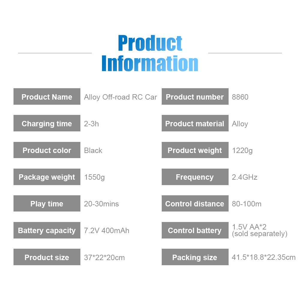 Flytec 8860 1:12 4CH 2.4G Full Scale Alloy RC Crawler RC Car