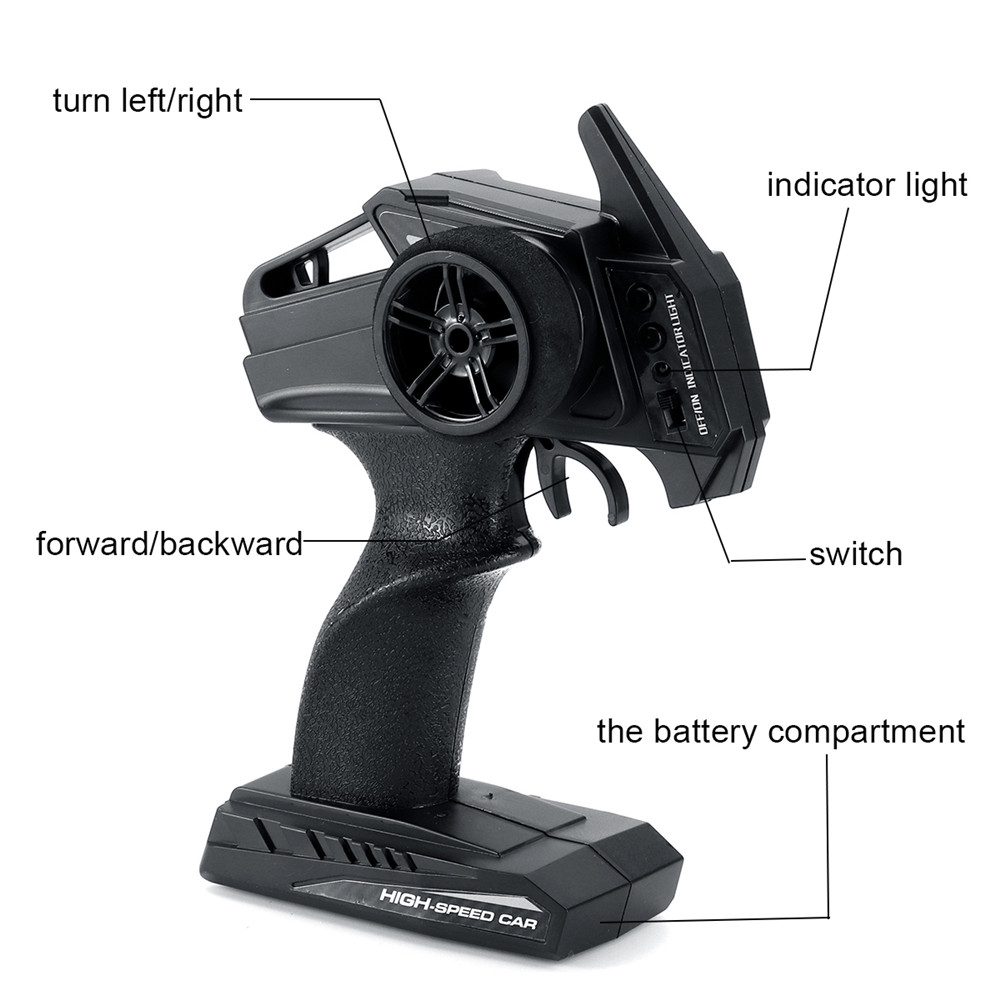 | Transmitter | Frequency: 2.4G Channel: 4CH Remote Distance:About 100m Battery:2X 1.5V AA(not included) | Battery | Battery for the Car:7.4v 1200mAh li-ion battery(included) Charging Time:About 3-4 hours Using Time:About 15 minutes |