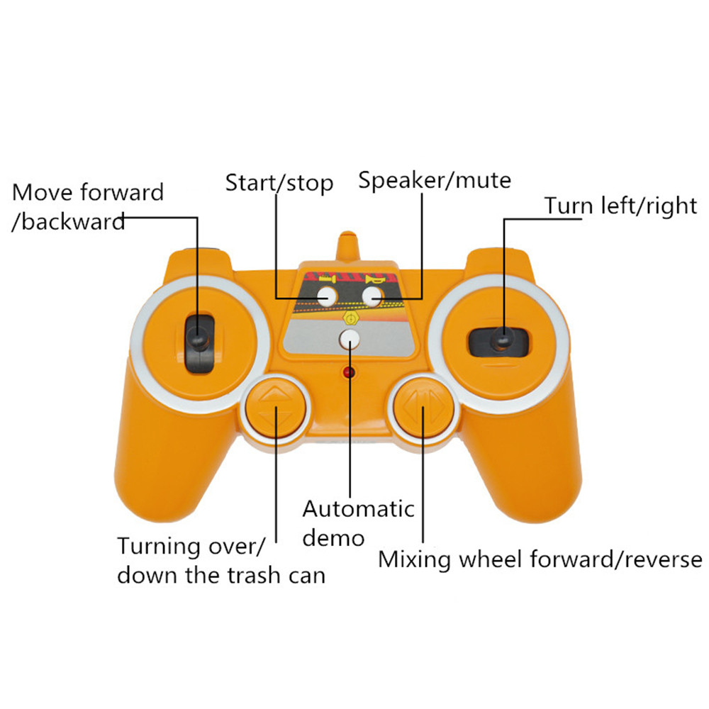 Function: Move forward,backward,turn left/right,speed up,slow down,speaker, music switch, with differential One-click stirring, one-button dumping 2.4G frequency control,can support multi-player play together Simulation LED lights Left and right turn signals, forward headlights, reverse taillights, headlights